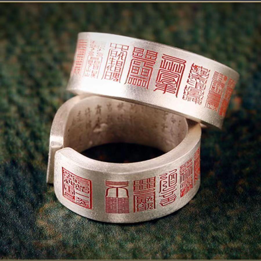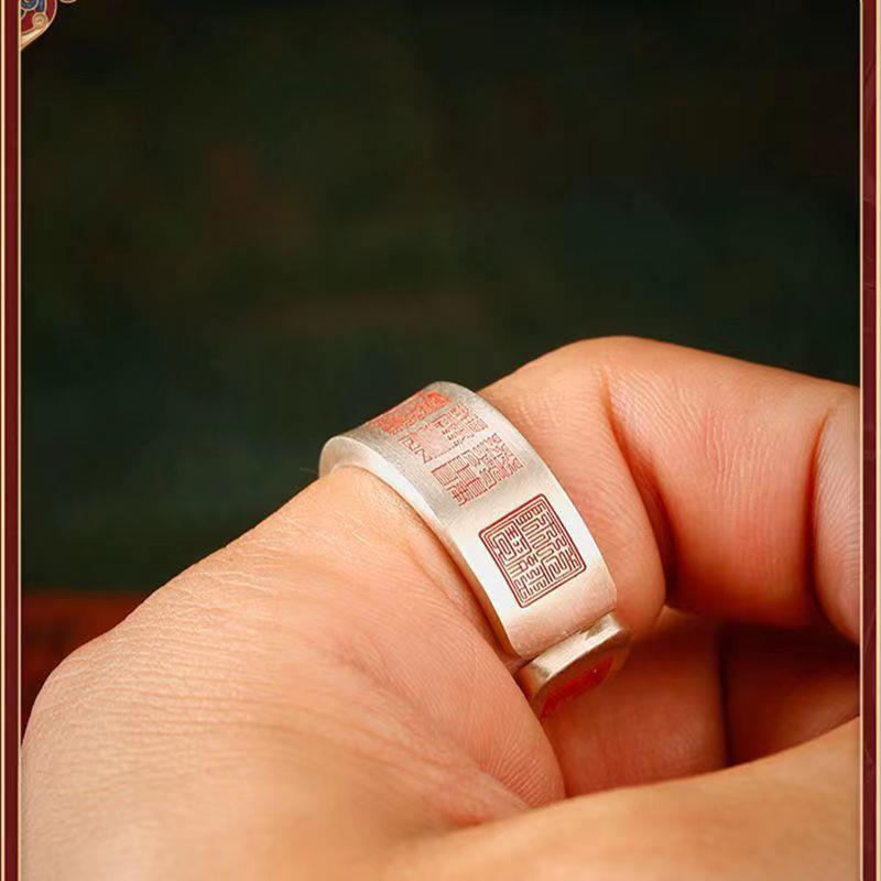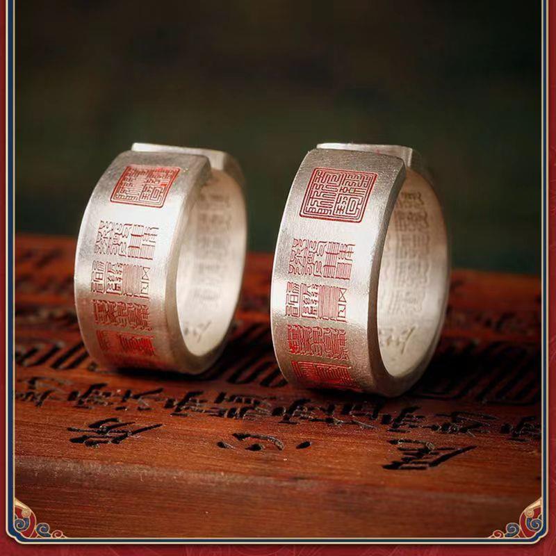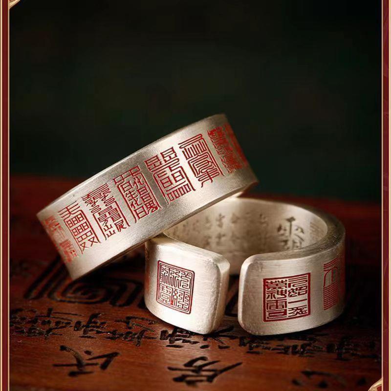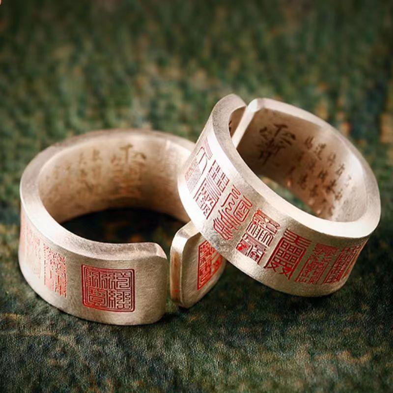 Taoist Blessing Ring Adjustable Open Band Handmade Couple Jewelry for Men Women