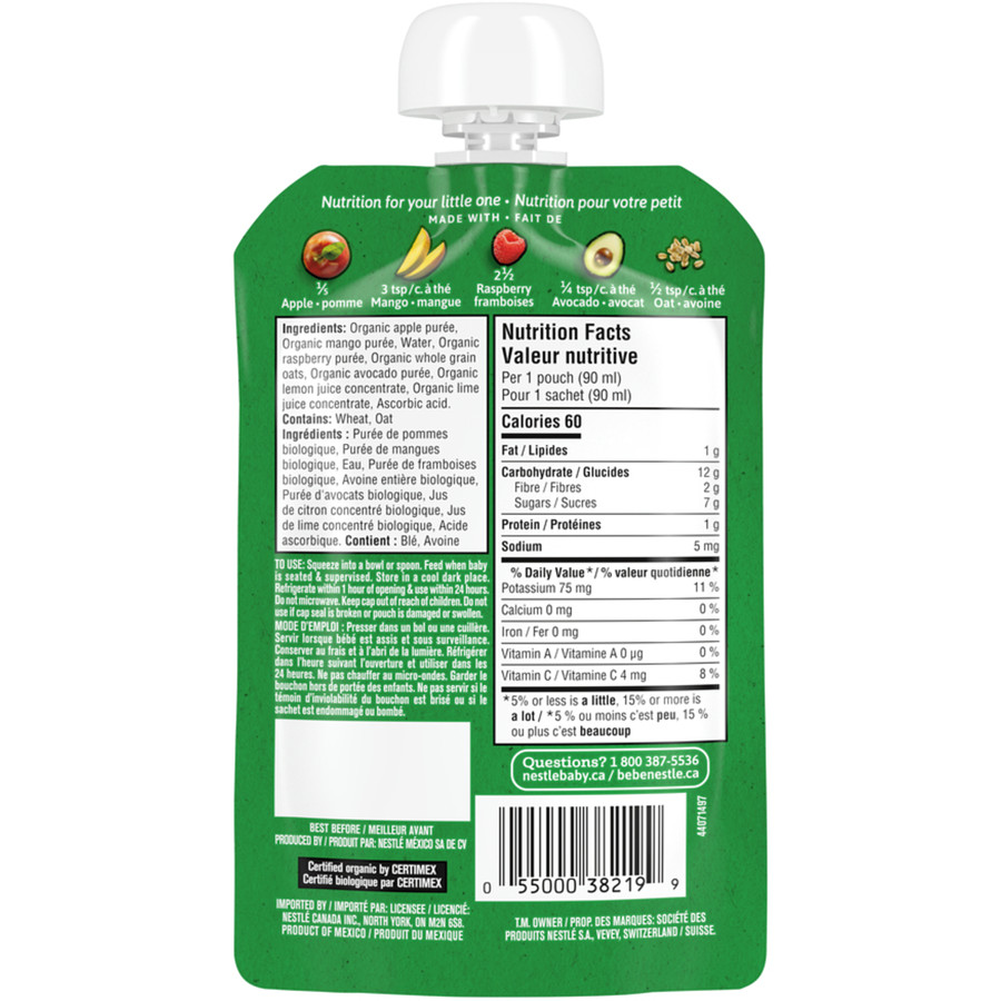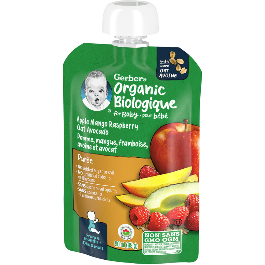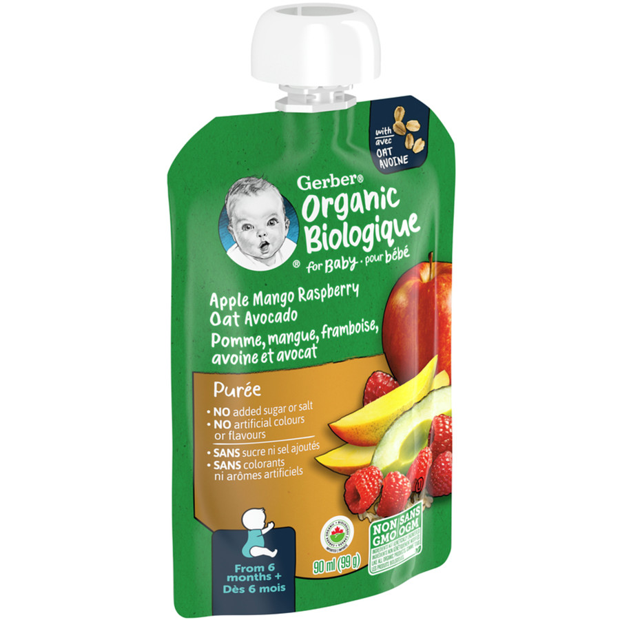 6-Pack Nestl Gerber Organic Toddler Pur e Apple Mango Raspberry Avocado Oat