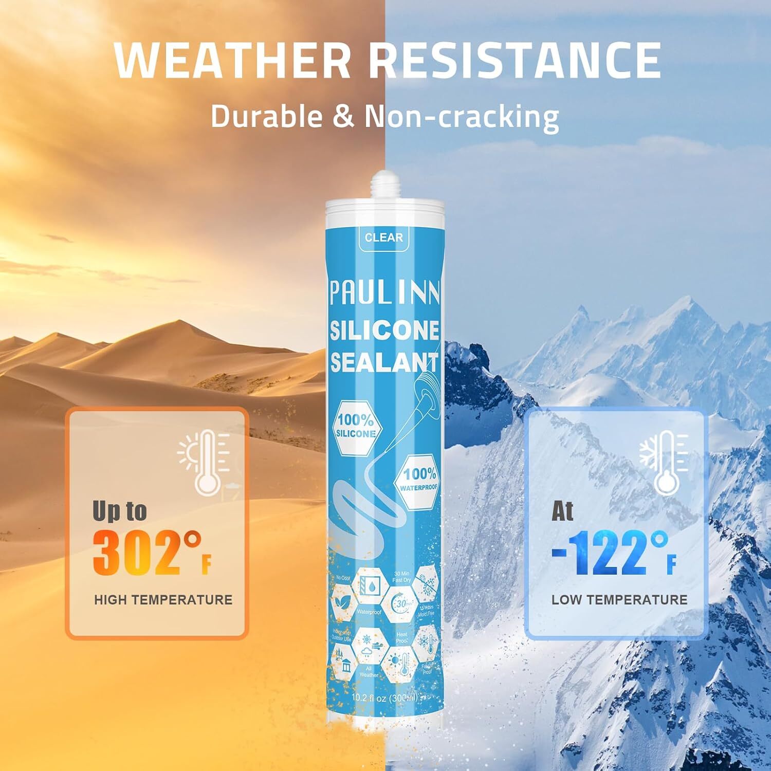 Clear Silicone Sealant Waterproof 100 Silicone Caulk for RV, Kitchen, Bath, Gen