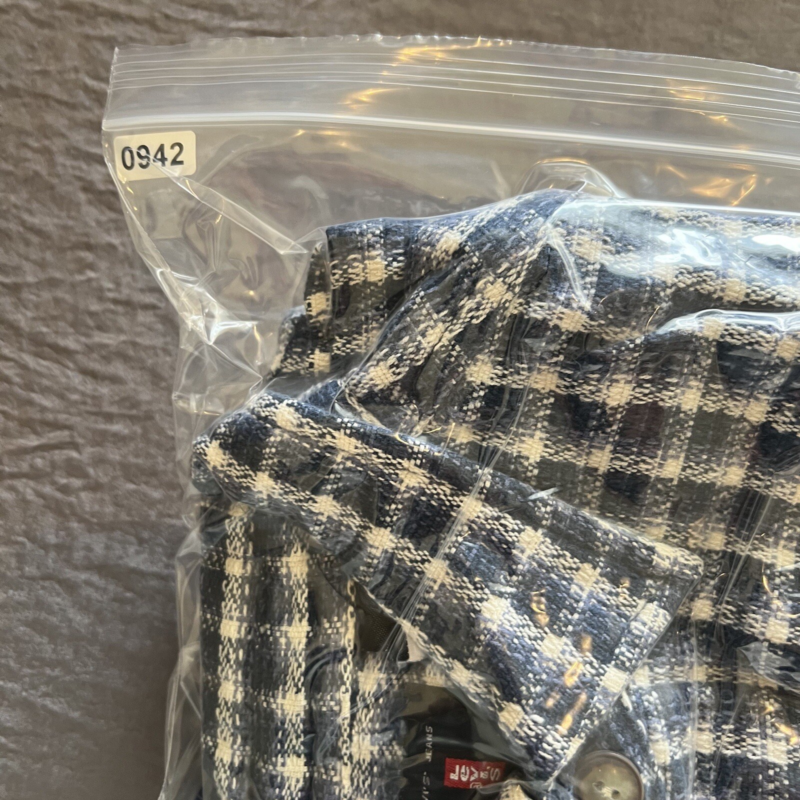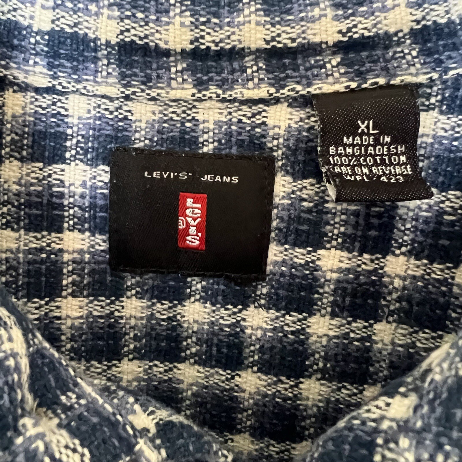 как выглядит VTG 90s LEVIS Jeans Blue White Plaid Weave Button Front Flannel Shirt Men Sz M фото