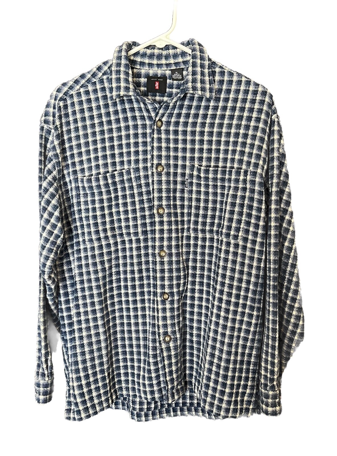 VTG 90s LEVI'S Jeans Blue White Plaid Weave Button Front Flannel Shirt Men Sz M