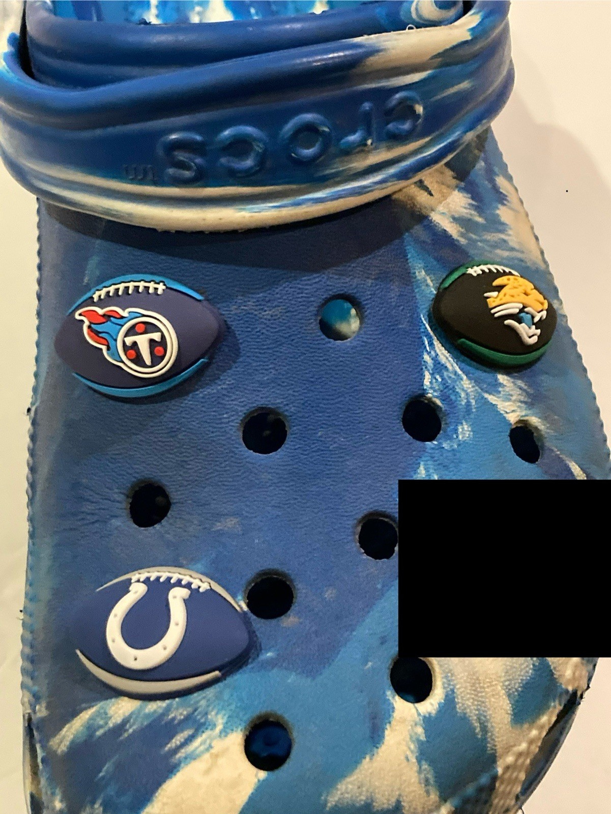 как выглядит NFL Crocs Shoe Charm AFC South, Colts, Jaguars, Titians Choose One фото