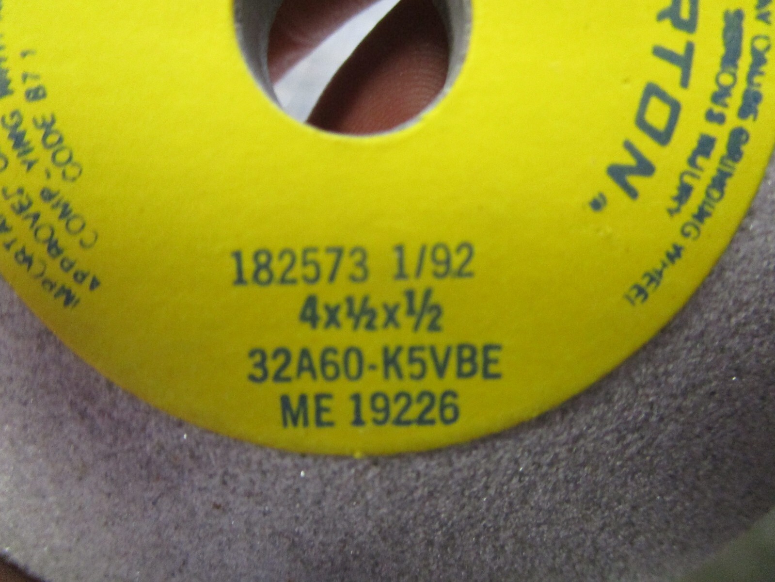 Norton 32A60-K5VBE 4 X 1/2 X 1/2 60 Grit Aluminum Oxide DISH Grinding Wheel