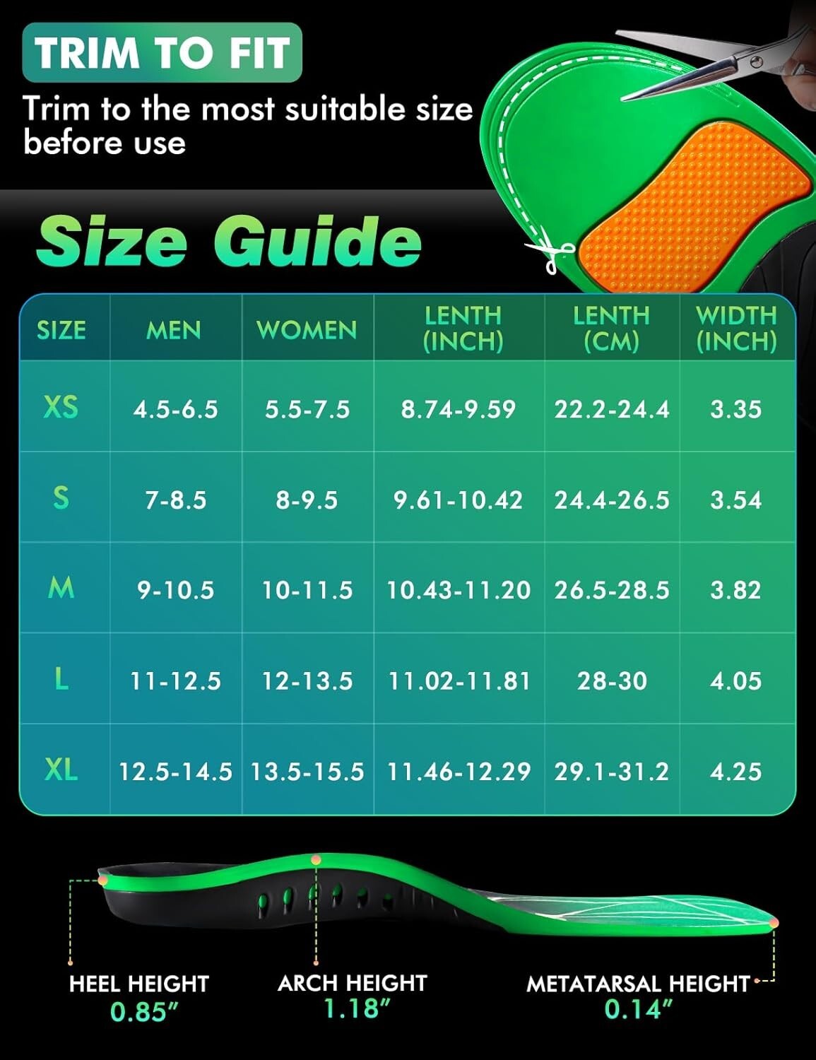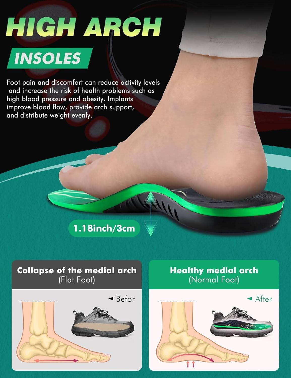 220 lbs Heavy Duty High Arch Support Insoles for Flat Feet Foot Pain Heel Pain