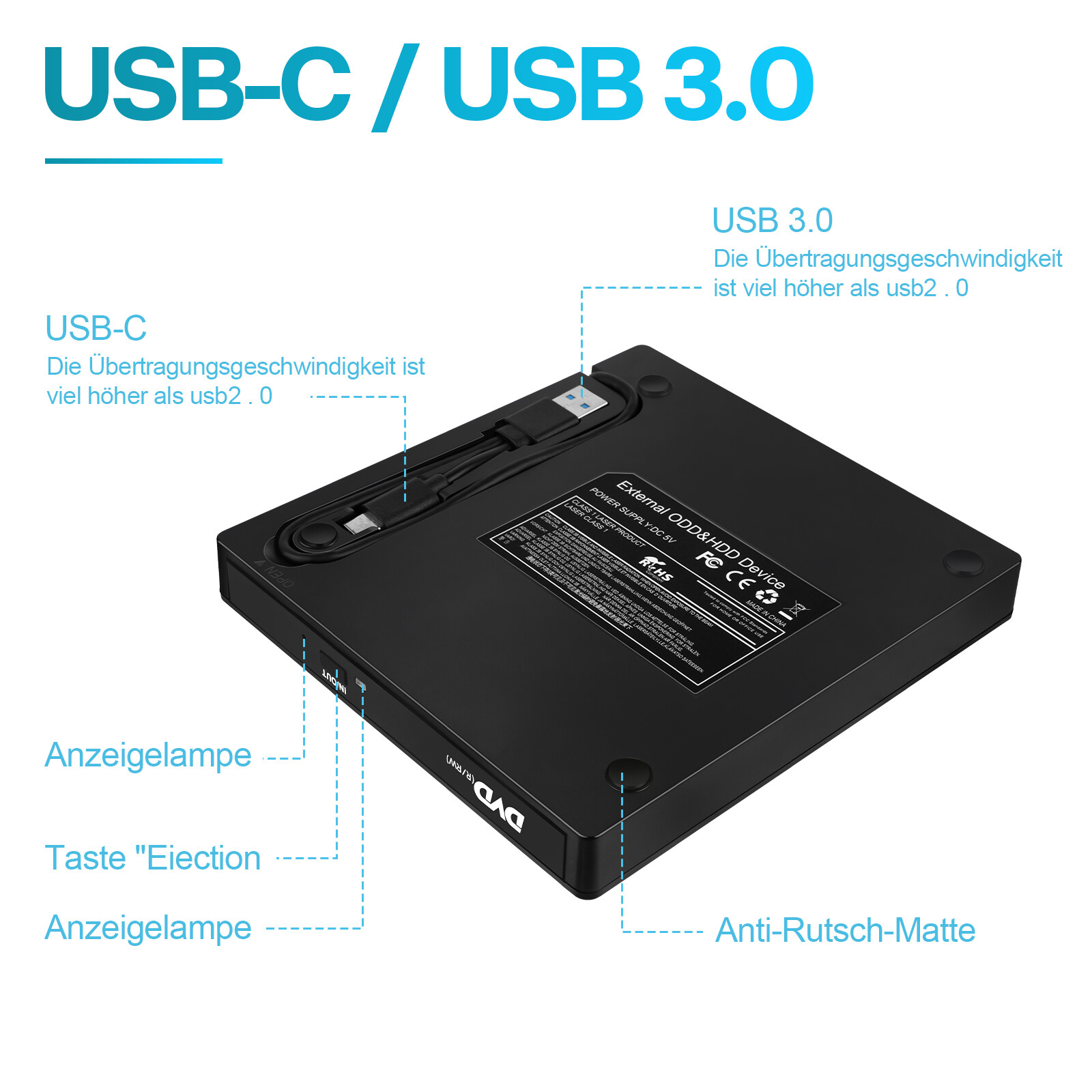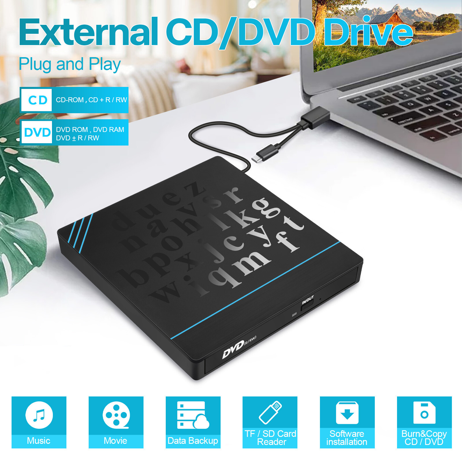 External CD DVD Drive USB 3.0 Player Burner Writer for PC Laptop Windows 11 10