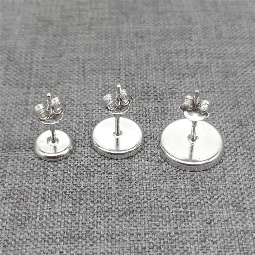 как выглядит 8prs of 925 Sterling Silver Stud Earring Round Bezel Cup Settings Rhodium Plated фото