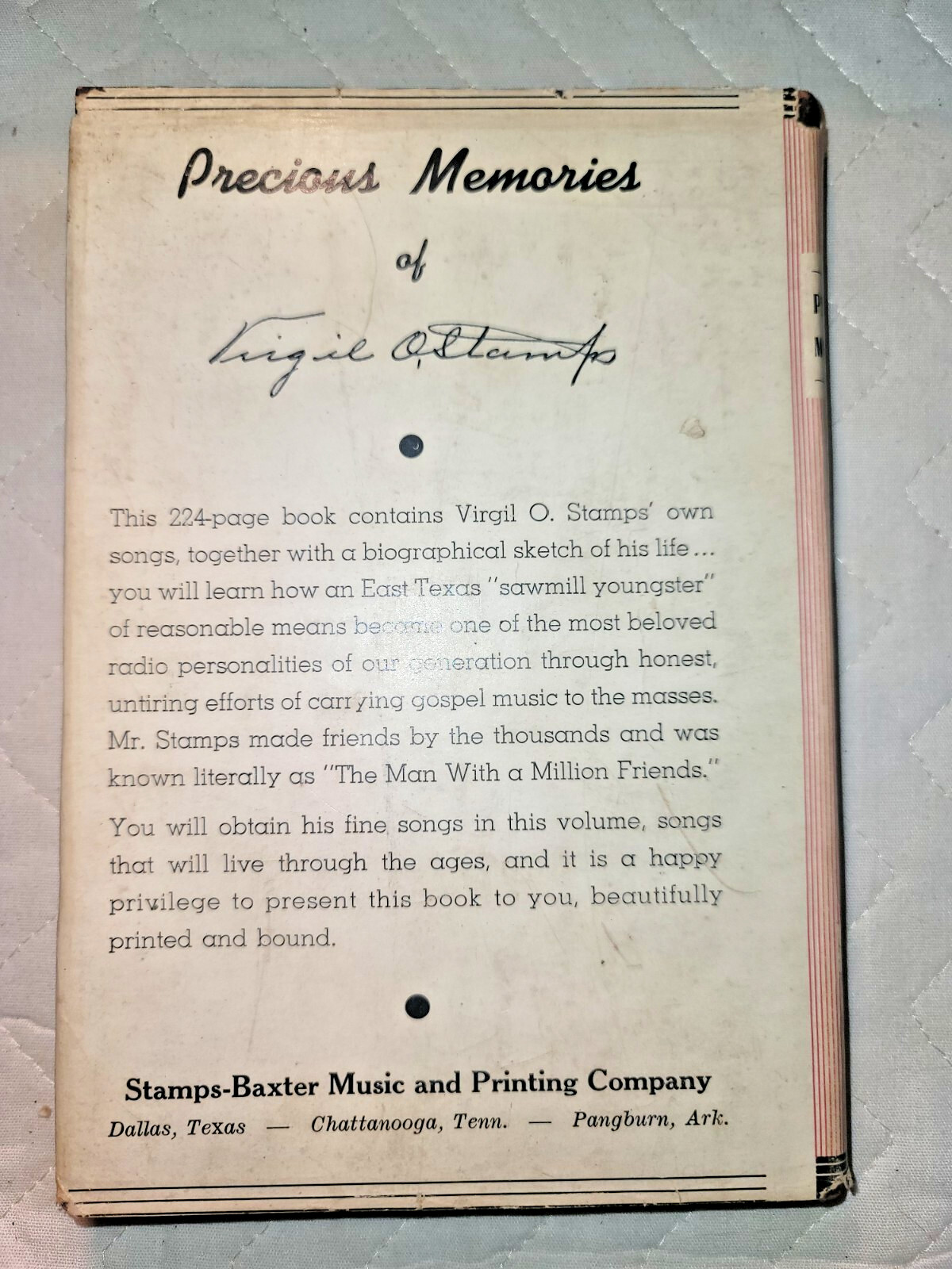 Vtg Stamps-Baxter Music Printing Co. - Precious Memories of V. O. Stamps 1941