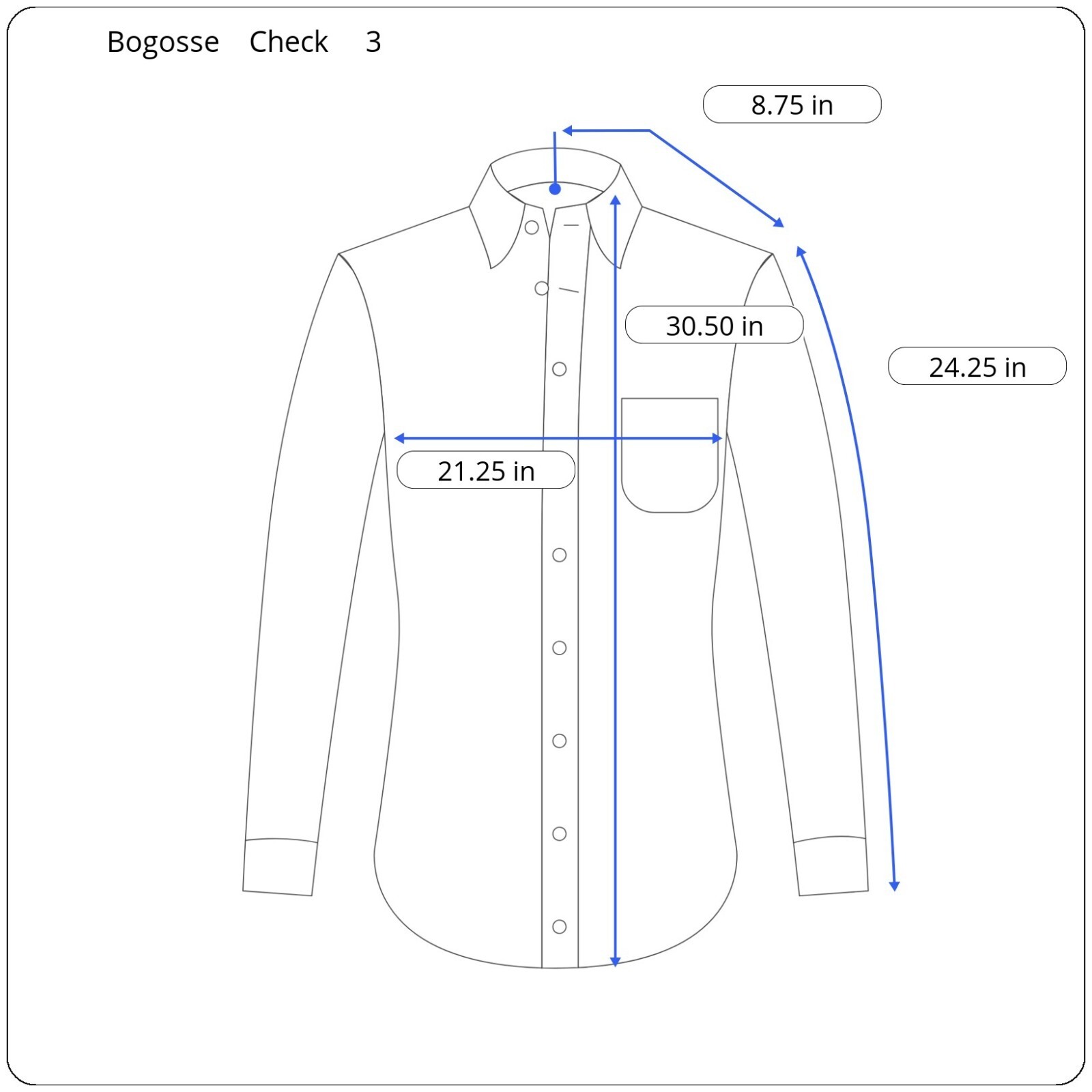 Bogosse Roll Tab Whipstitch Macro Check Button Up Shirt Mens 3 Medium Blue Brown