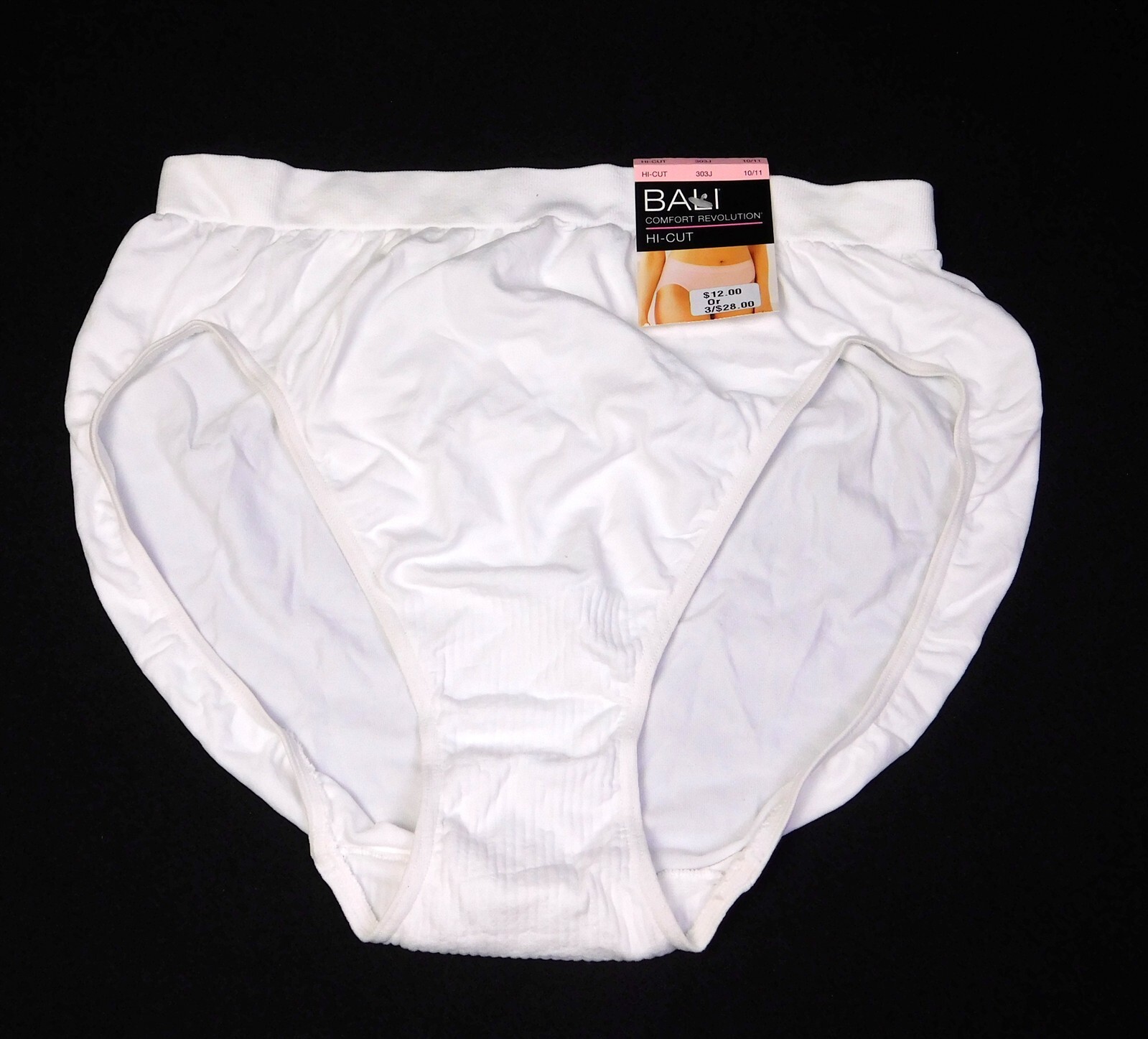 2 Pair NOS BALI 100 Nylon Mid Rise White Beige Panty Underwear Brief Size 10/11