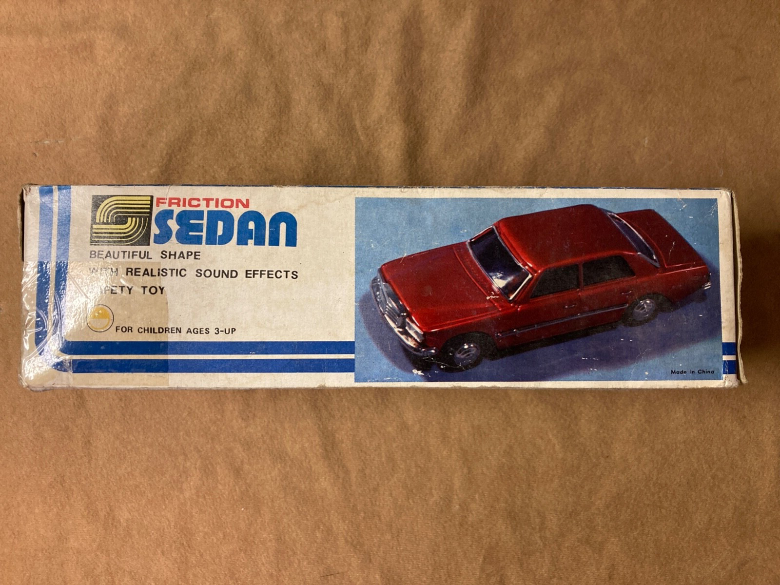 1970s 1980s Voiture Red Mercedes Benz Sedan Tin Metal Friction Car, NEW with box