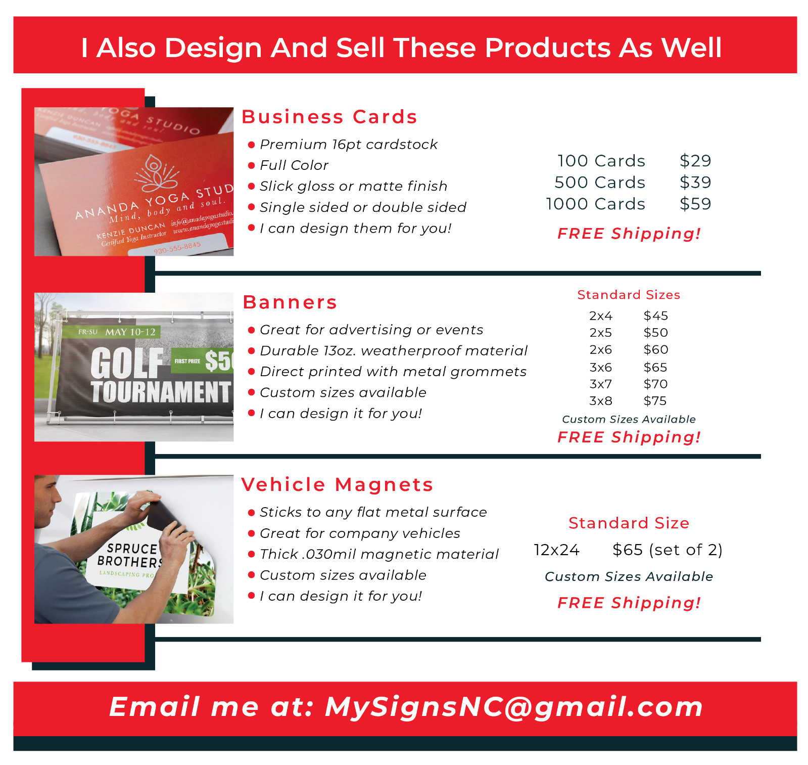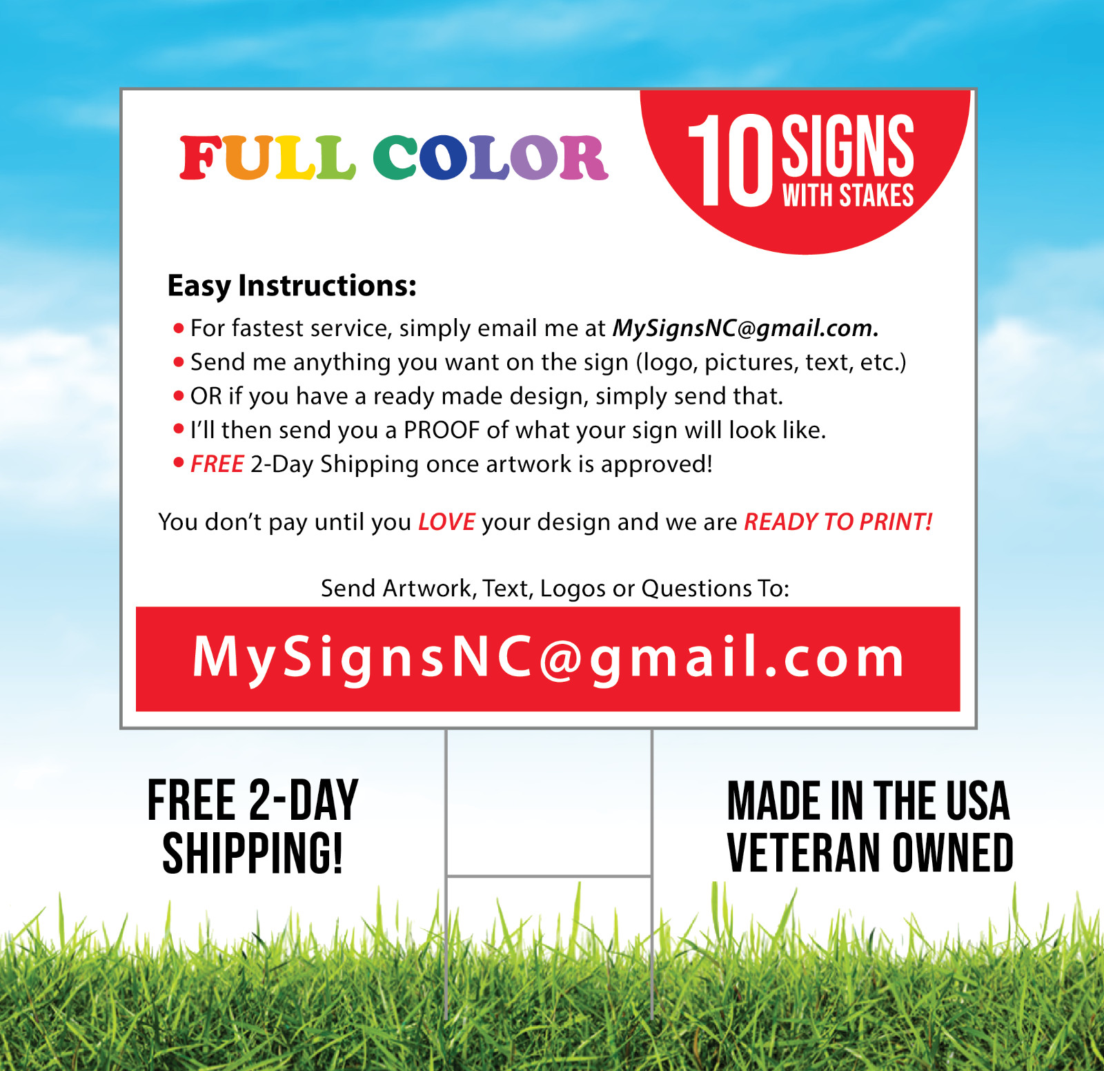 Personalization Instructions: Send artwork, logos, text or questions to (MySignsNC@gmail.com)
