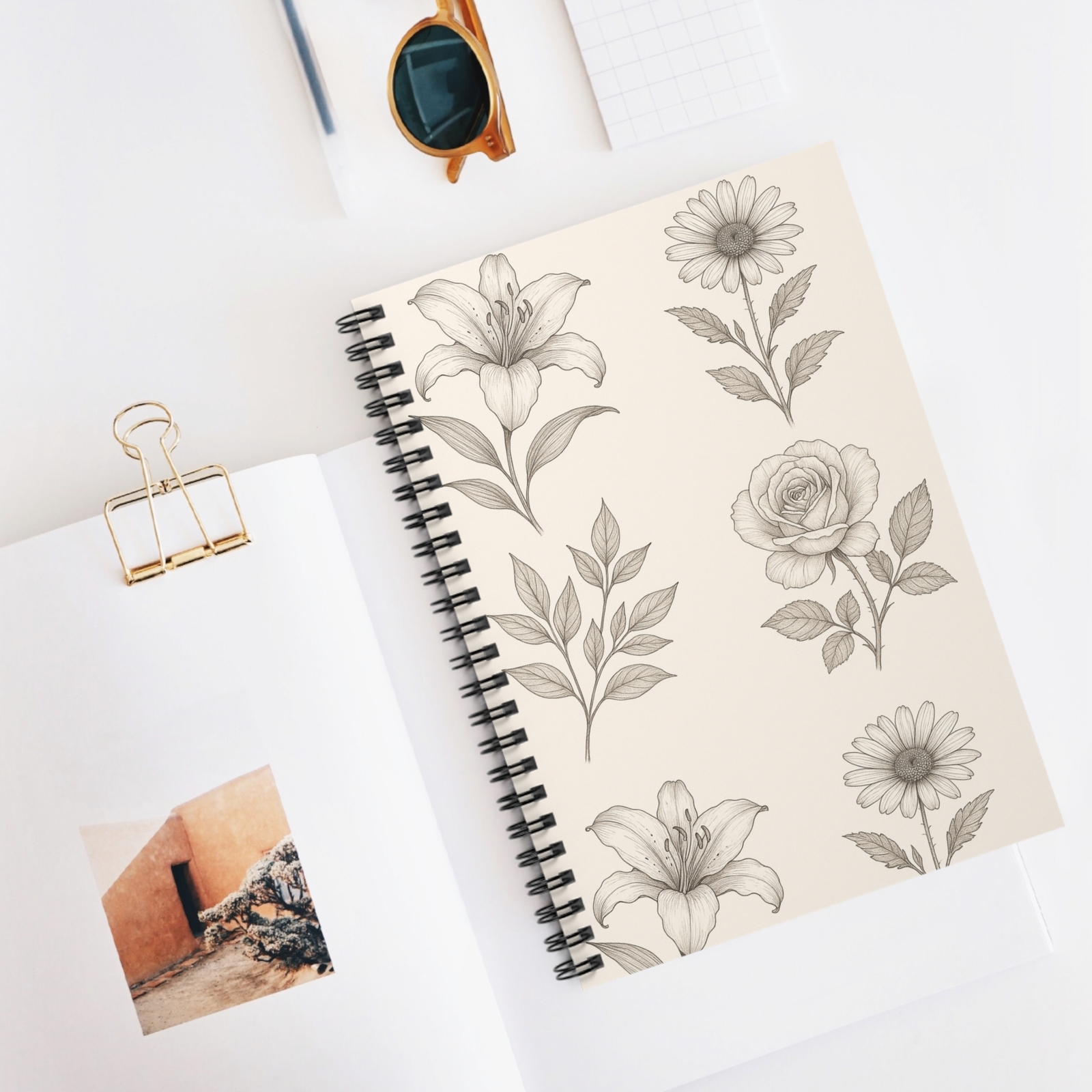 как выглядит Botanical Sketch Spiral Notebook - Ruled Line, Elegant Floral Journal, Nature фото