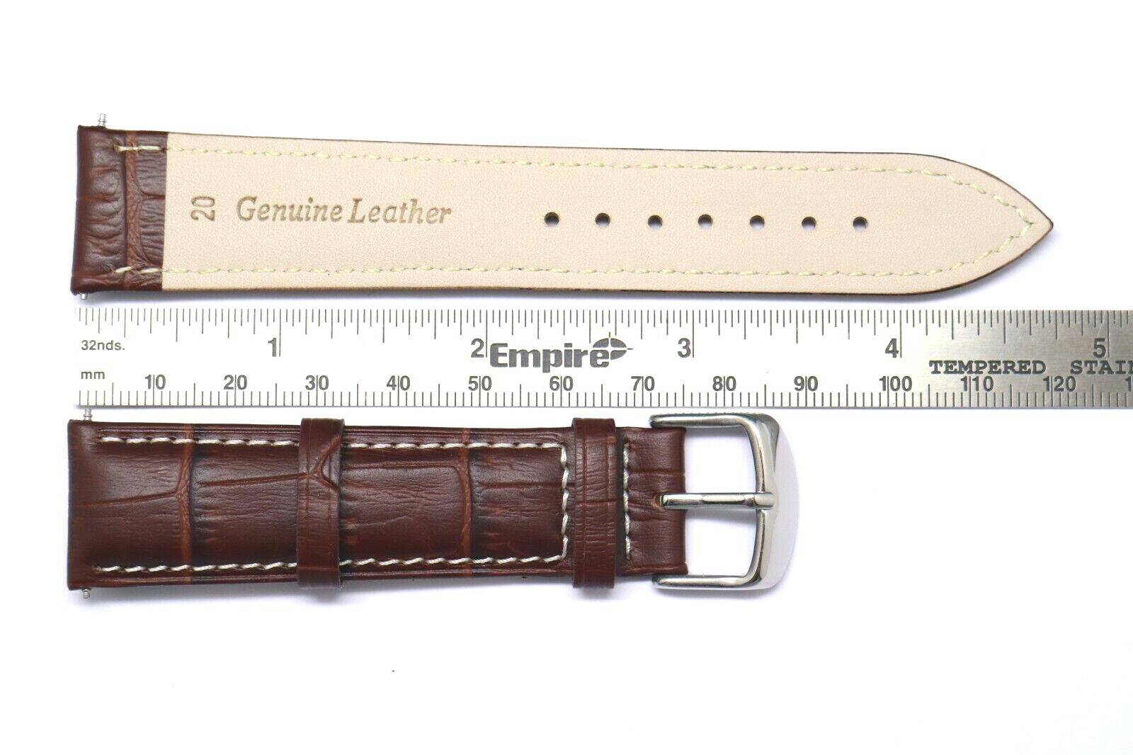как выглядит 18mm 20mm 22mm 24mm Brown/White Alligator Grain Leather Watch Band Silver Buckle фото