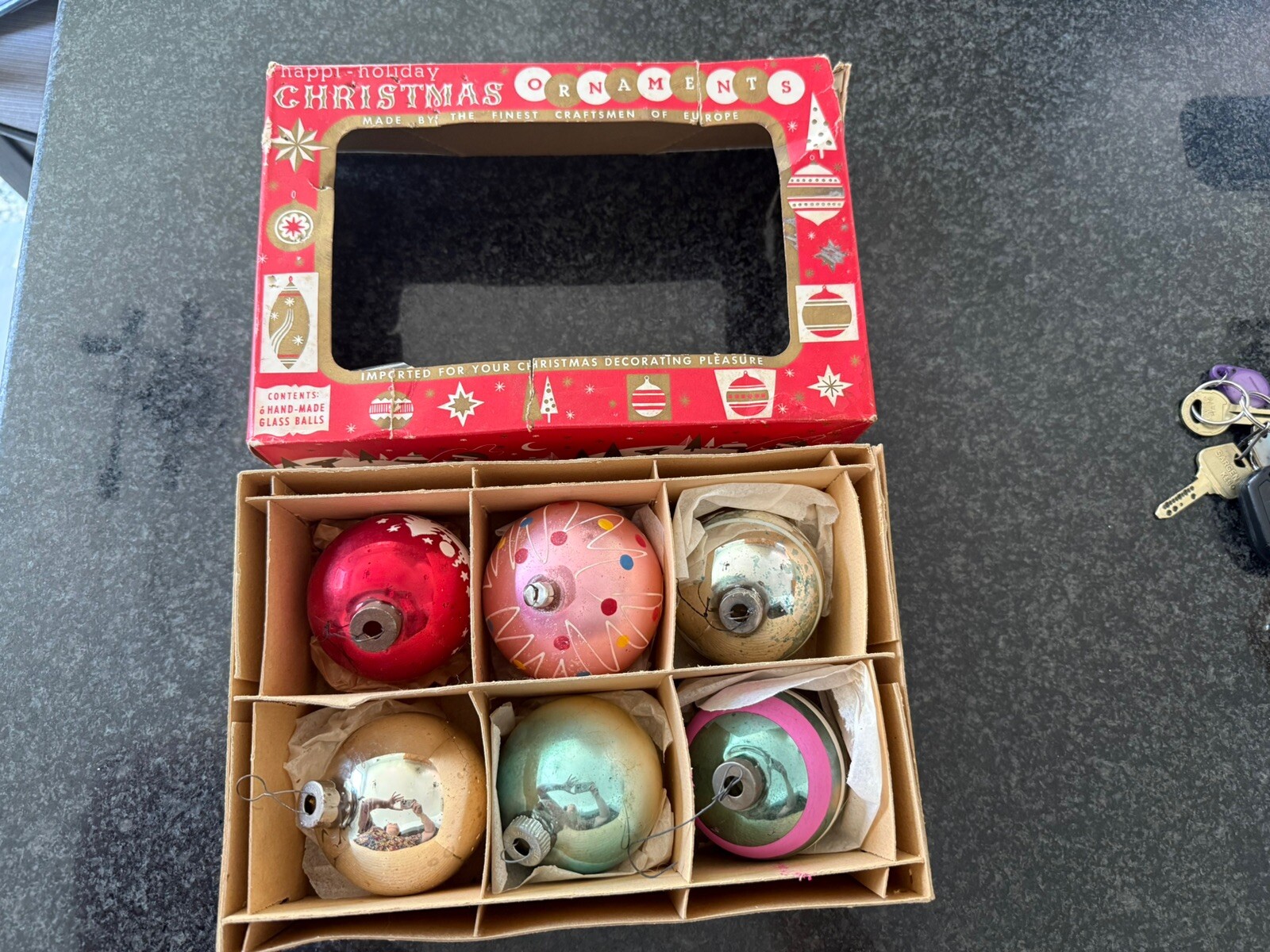 Vintage Christmas Tree Ornaments Mercury Glass Lot Of 6 in Box