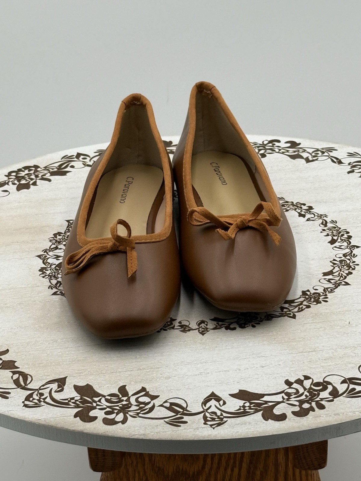 как выглядит Women s C Paravano Size 5.5 Brown Slip On Round Toe Ballet Flats фото