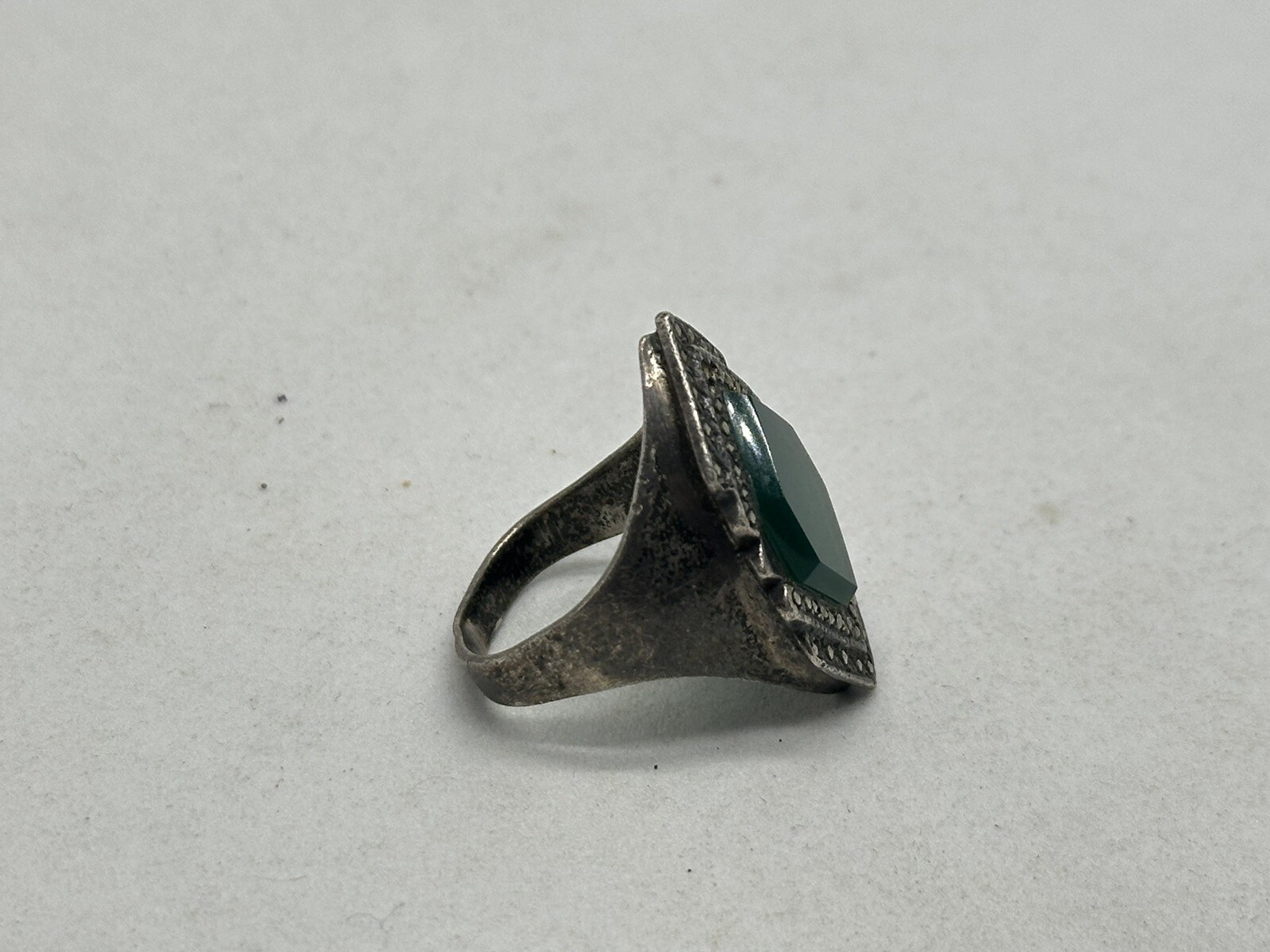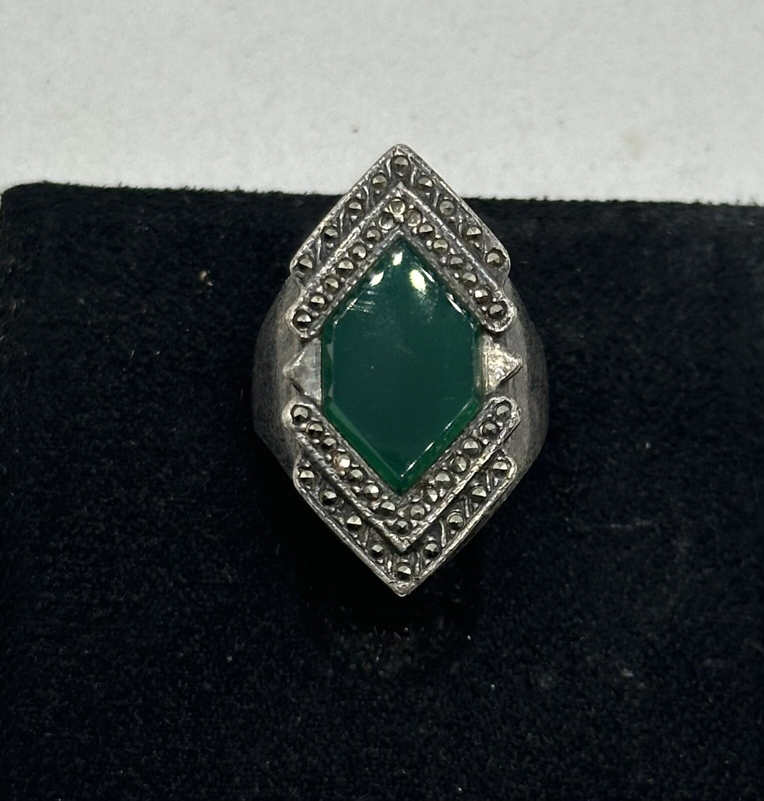 как выглядит Vintage Sterling Silver, Green Gemstone Marcasite Ring 7.50gr Size 6.75 фото