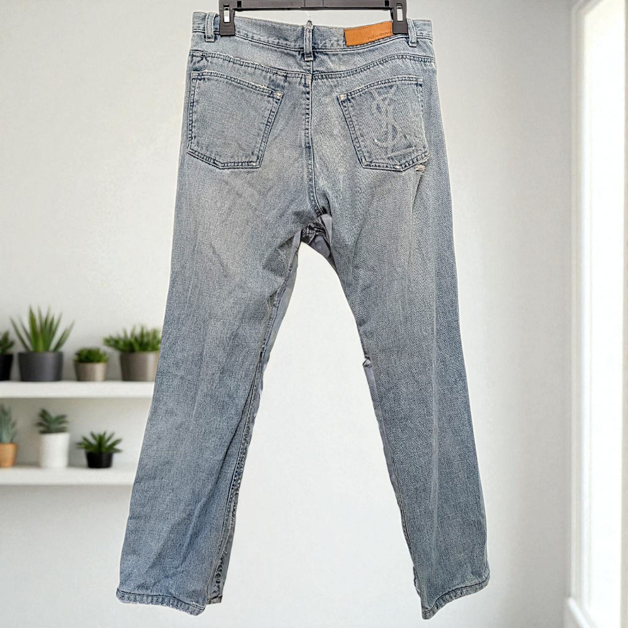 как выглядит Yves Saint Laurent vtg 90s oversized YSL embossed logo distressed jeans IT 48 фото