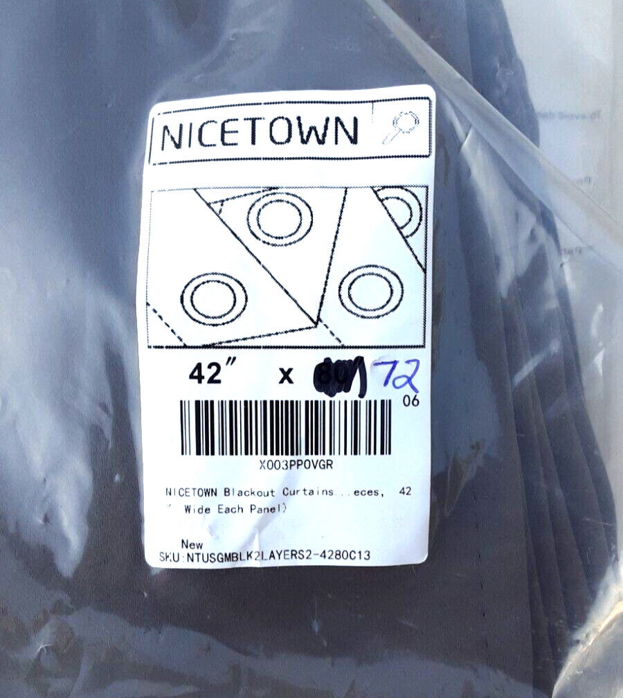 2x Nicetown Insulated Room Darkening Blackout Curtains 42 x 72 Gray Grommets