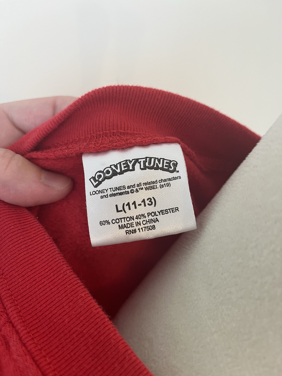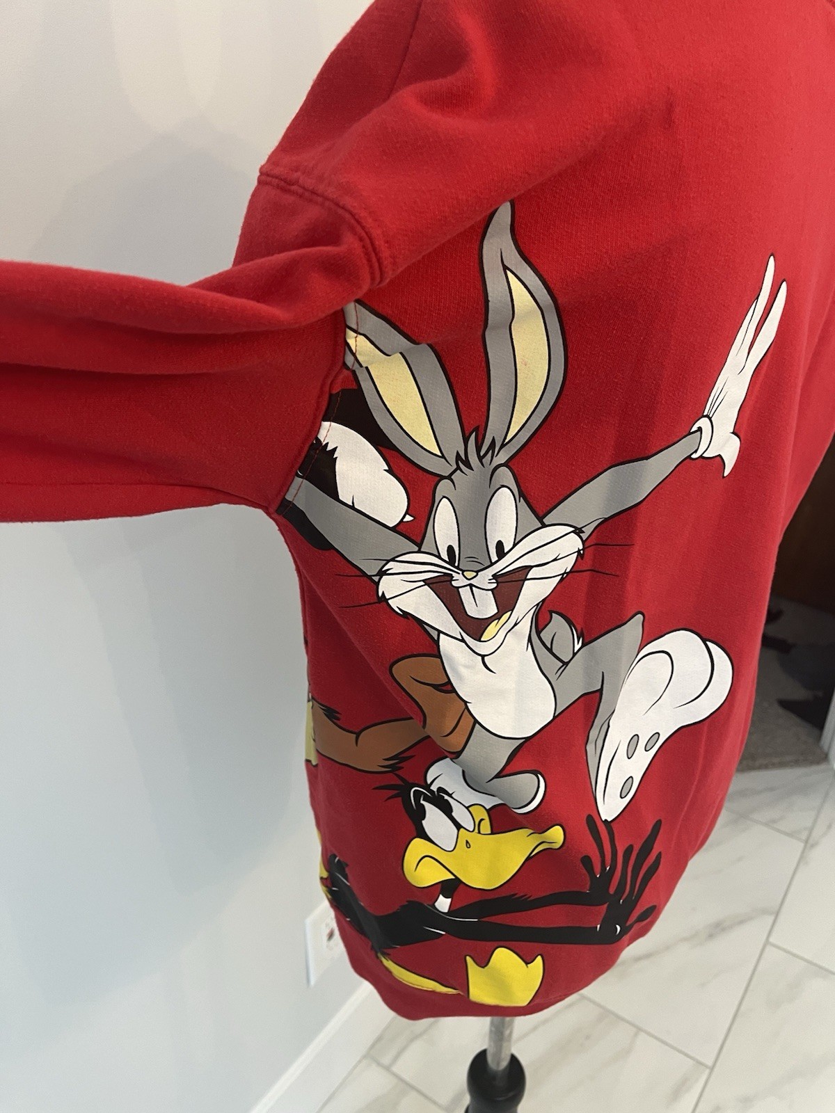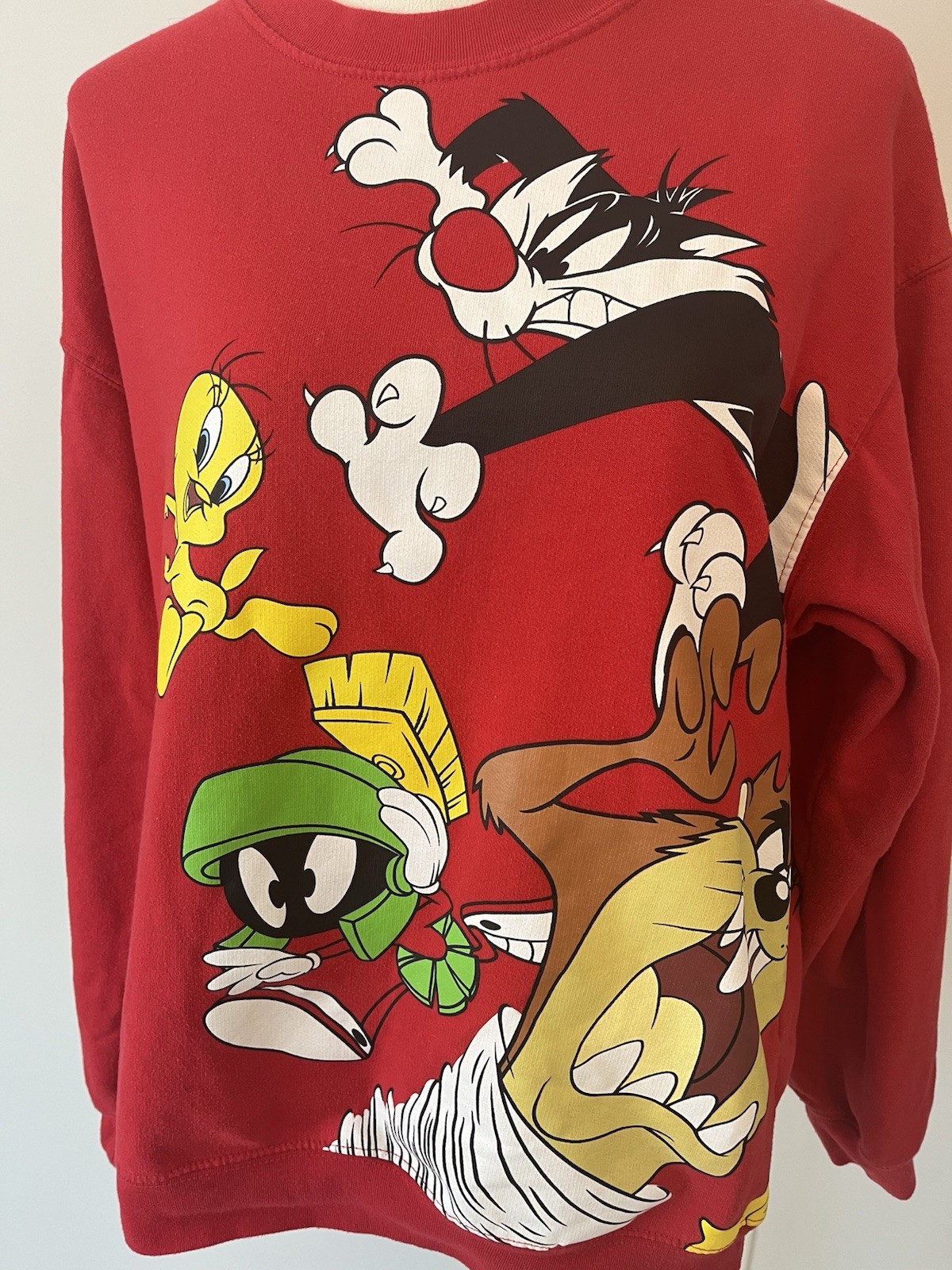 Looney Tunes Pullover Womens Size L 11-13 Red All Over Print Sweatshirt