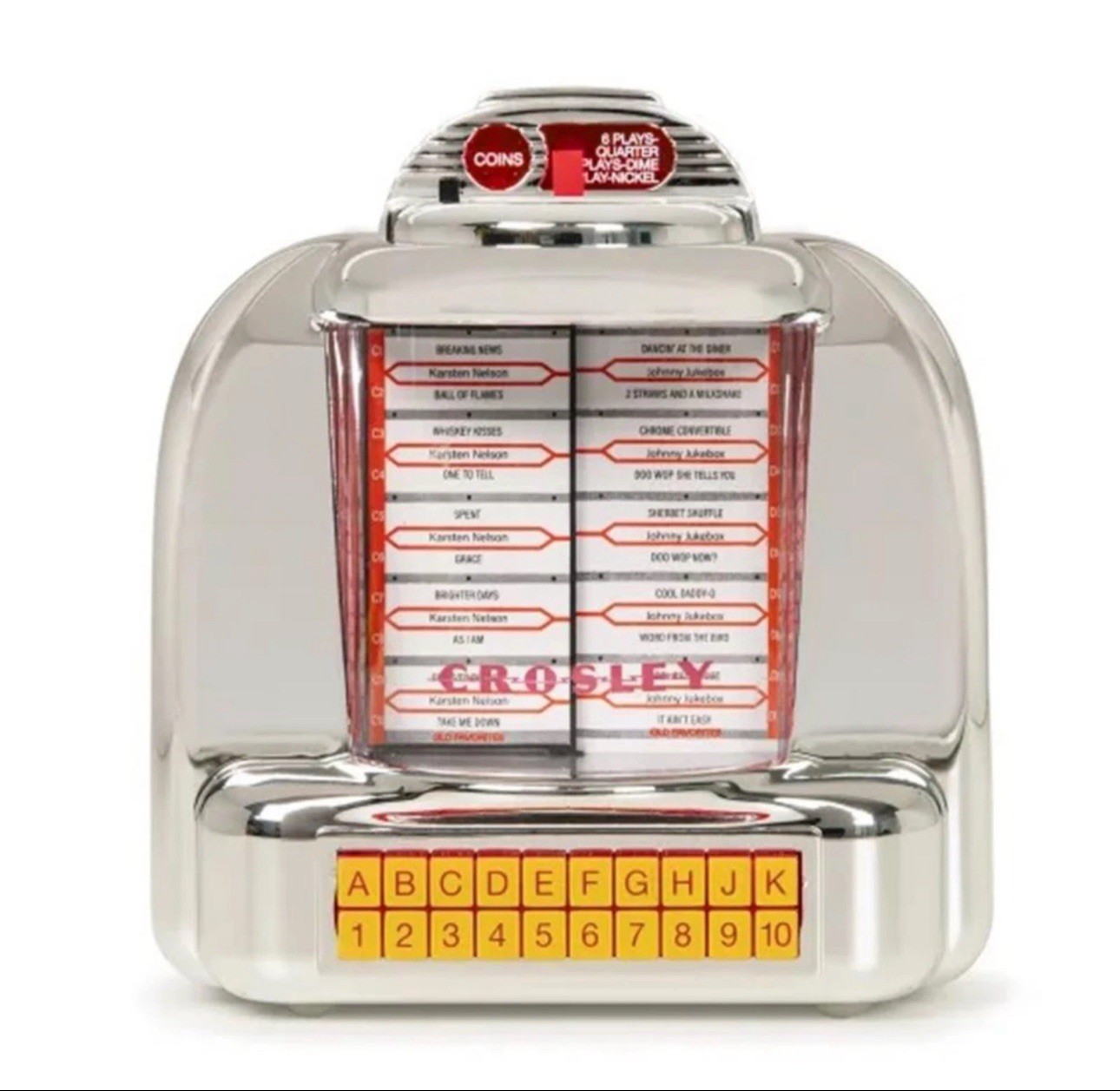 как выглядит Crosley Diner Jukebox Tabletop Bluetooth Radio/ Speaker Chrome Plated CR1120A-SI фото