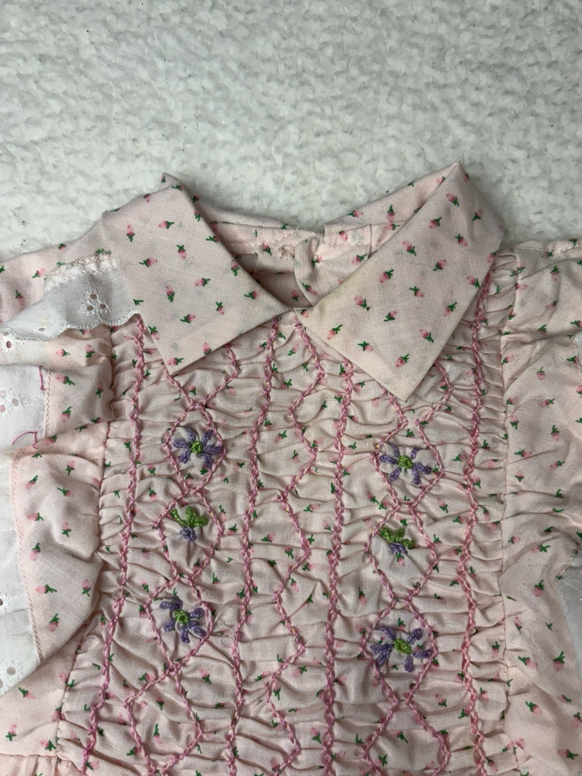 Handmade Girls Pink Floral Vintage Smocked Ruffle Dress