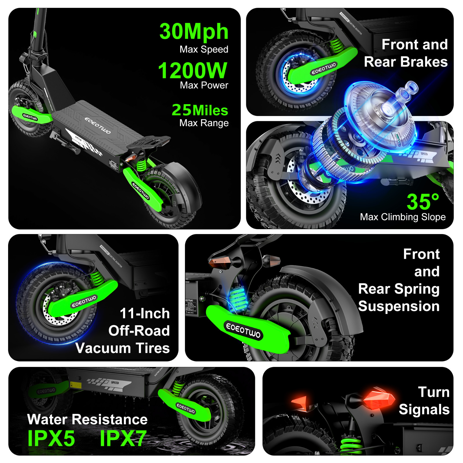 1200W Electric Scooter for Adult 30MPH Fast Off Road Escooter 11'' Tire Foldable