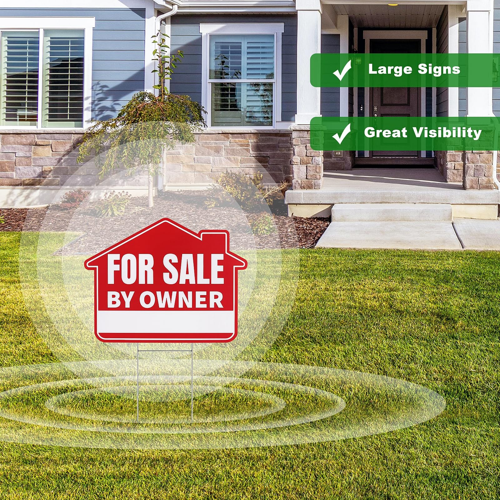 2 Pack For Sale By Owner Sign with Stakes 17 x 13 Double-Sided Yard Signs w...
