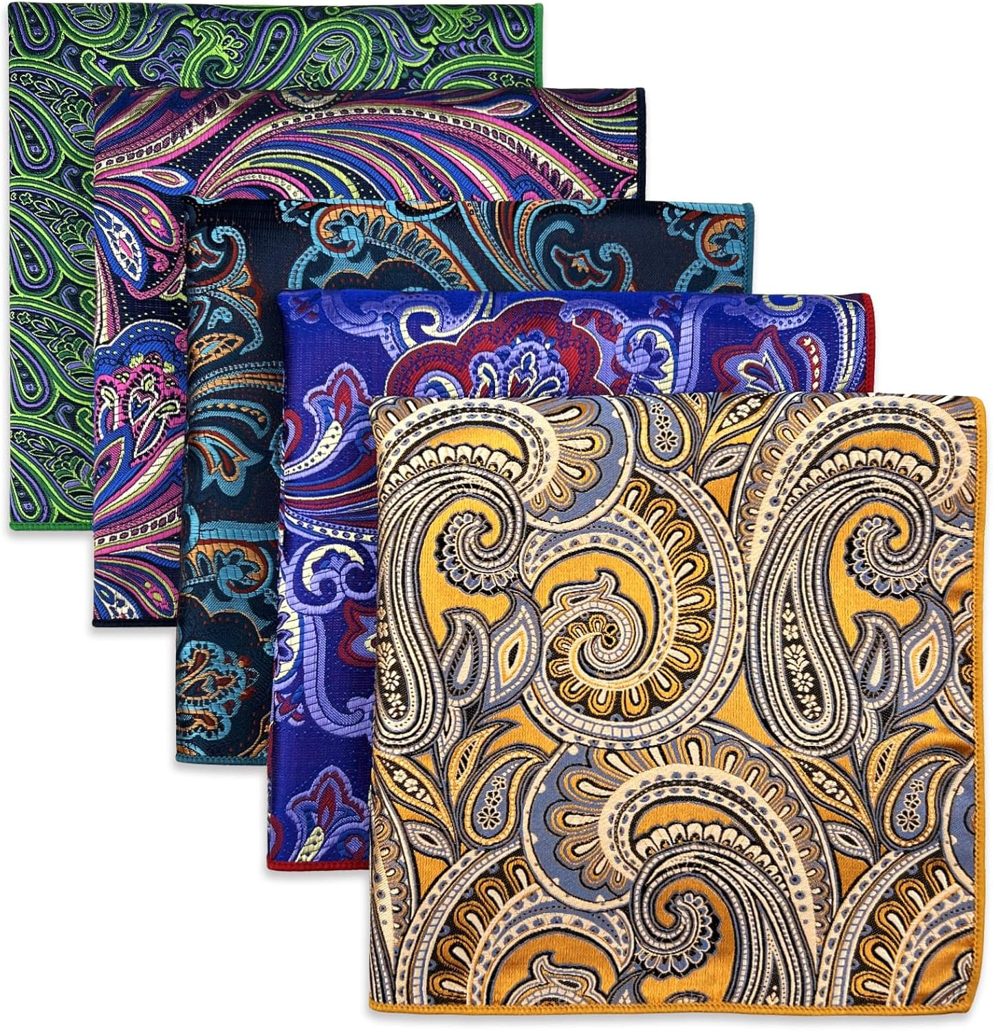 SHLAX WING 5 Pieces Assorted Mens Silk Pocket Square Set Handkerchiefs