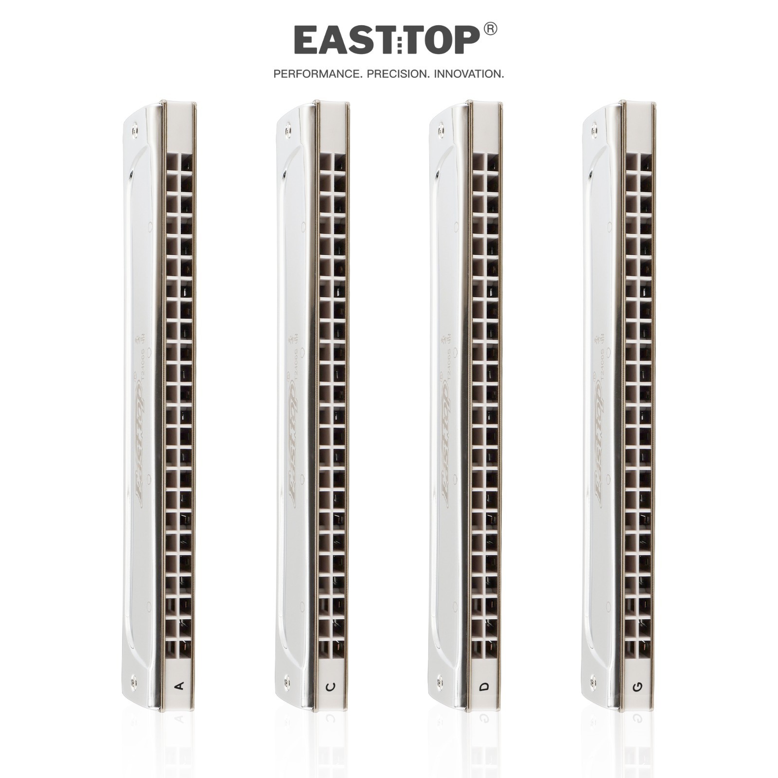 Easttop 4 keys 24 Hole Professional Tremolo Harmonica Set of A C D G Mouth Organ
