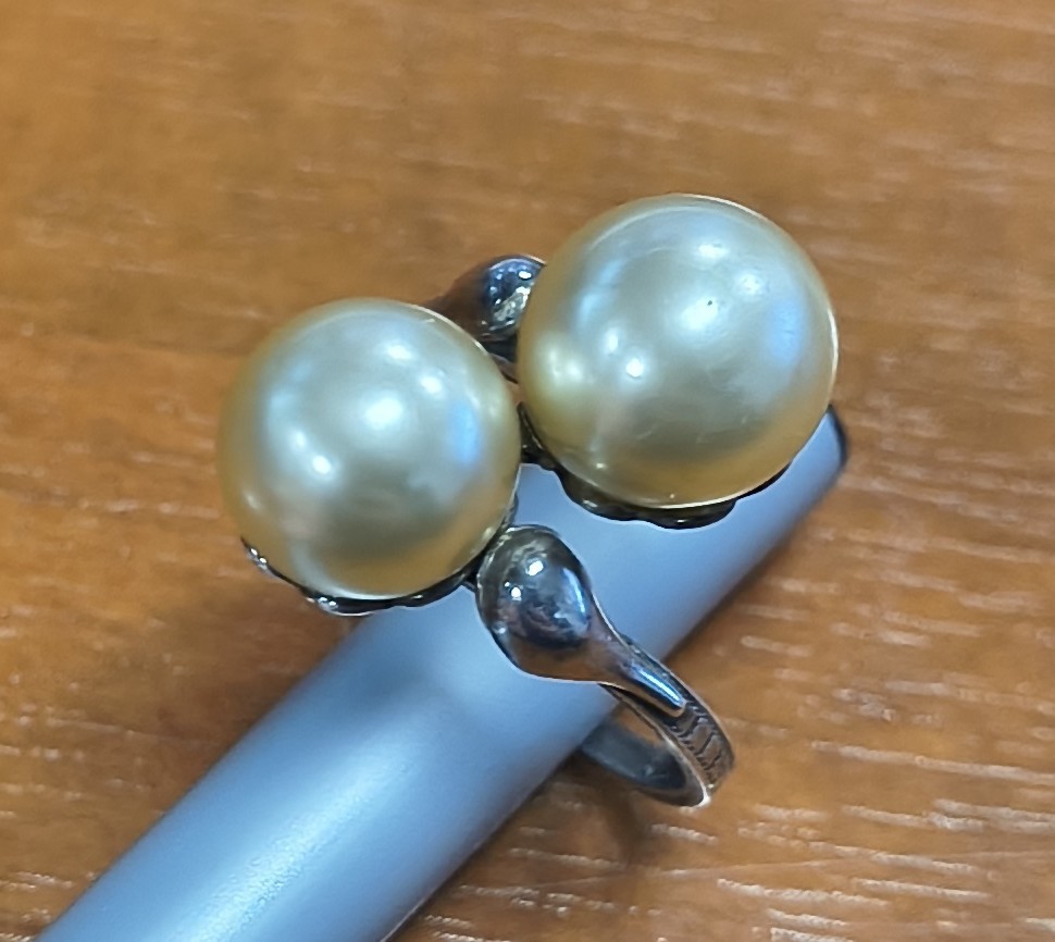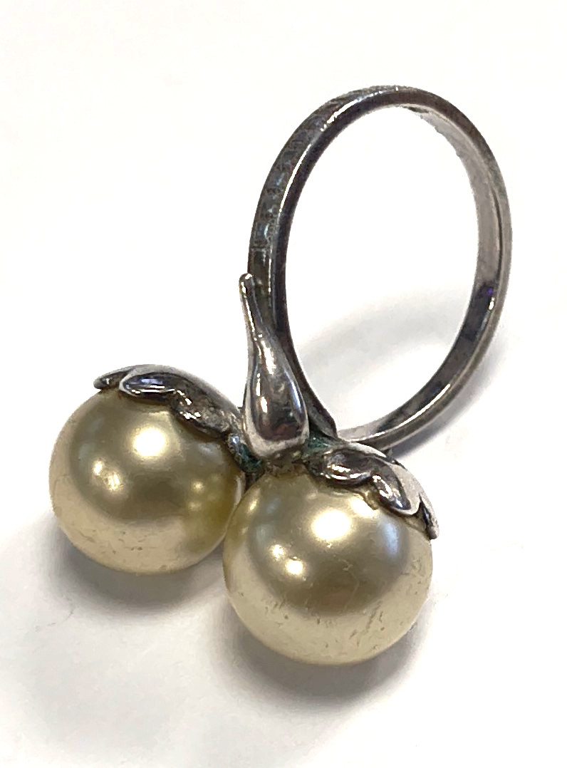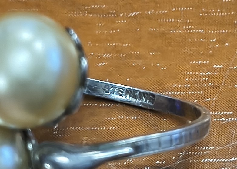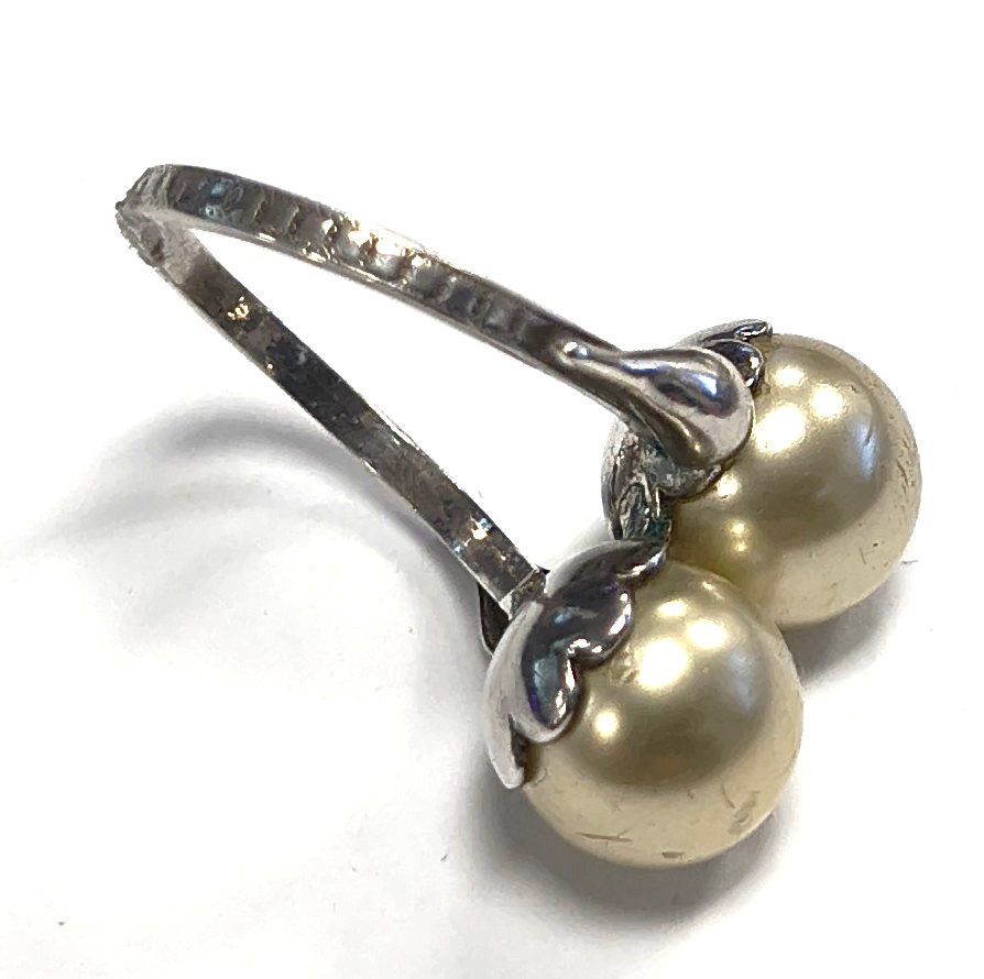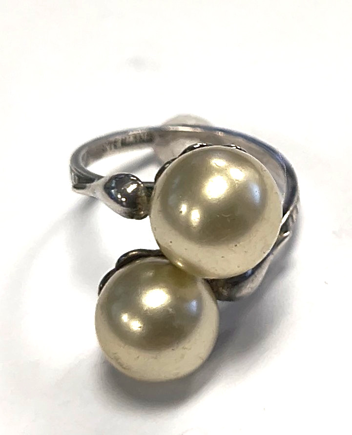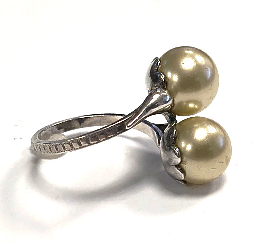 как выглядит Vintage 60s Sterling Silver Cultured Pearl Bypass Style Ring Size 4.5 фото