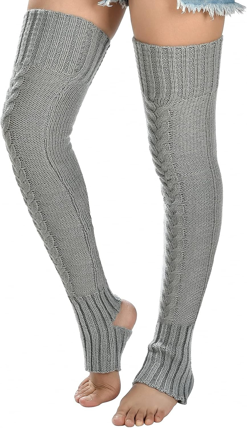 Women'S Cable Knitted Thigh High Leg Warmers Extra Long Stirrup over Knee High W