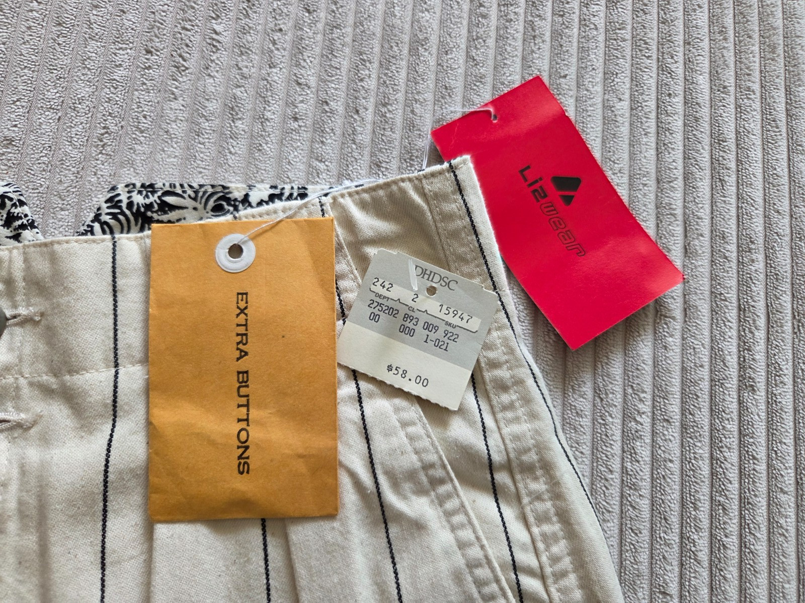 Vintage 80's Liz Wear Neutral Striped High Waisted Cuffed Pants Size 4 NEW NWT