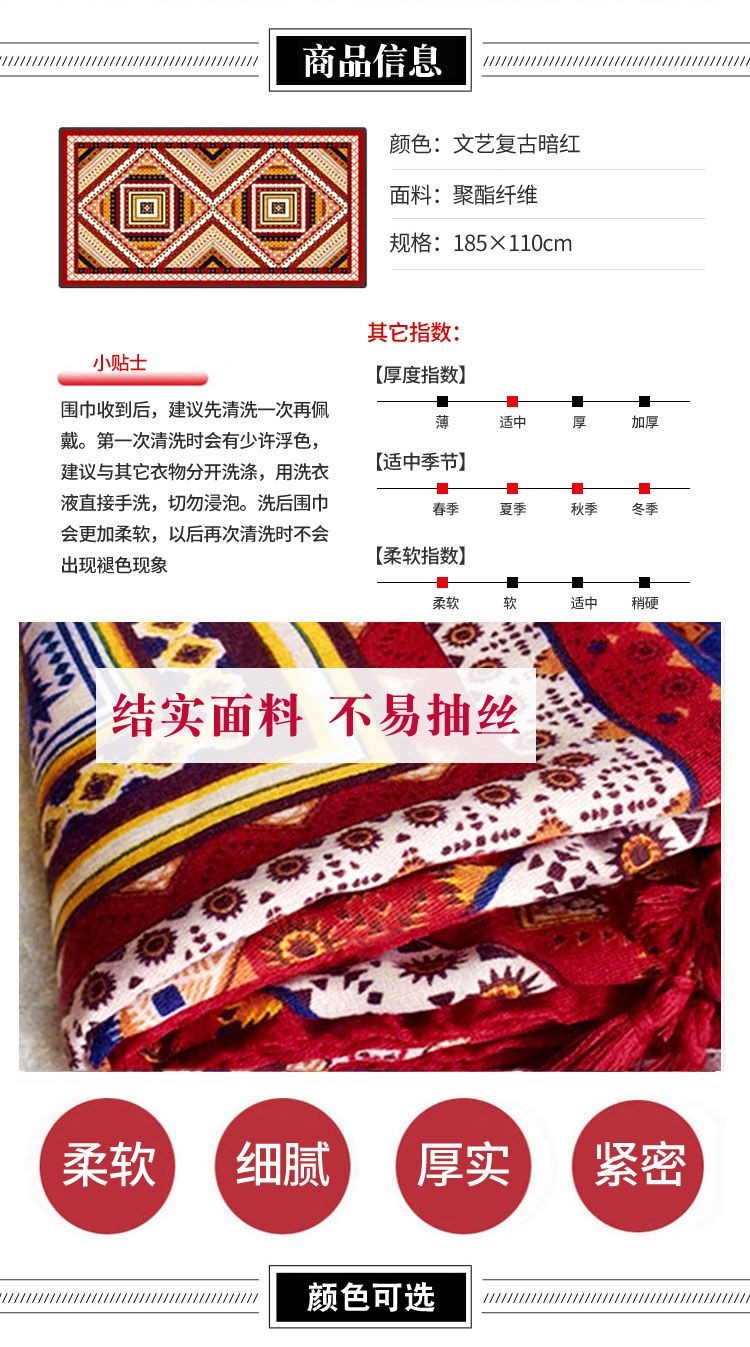 Red Ethnic Cotton Linen Scarf Beach Travel Shawl Sunscreen Wrap for Women