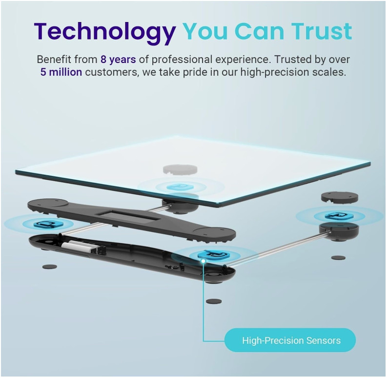 Digital Bathroom Scale, Large Blue LCD, 6mm Glass, 400lbs High Precision