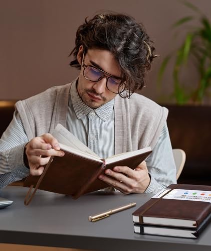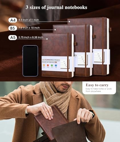 Lined Leather Journal Notebook for Men Women, Hardcover Journals with A5 Brown