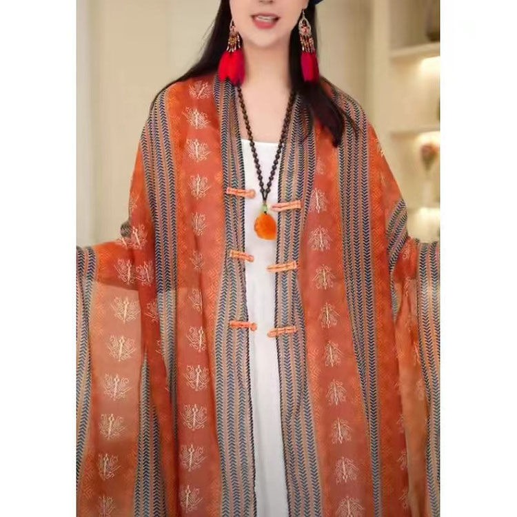 Red Ethnic Head Scarf for Women Summer Desert Travel Beach Wrap Shawl Cover Up