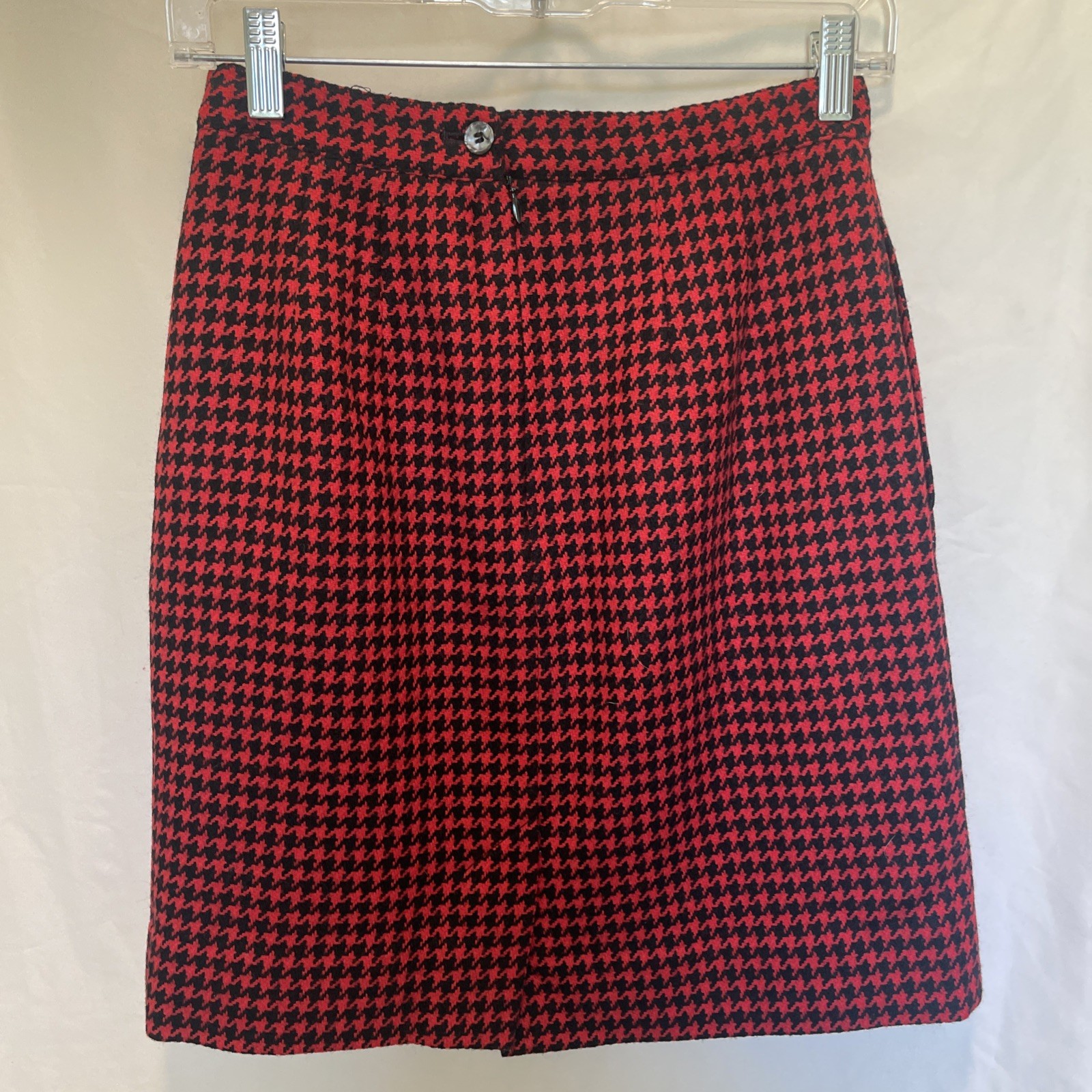 Vintage Liz Clairborne Collection Wool Blend Houndstooth Skirt Size 4- Red/Black