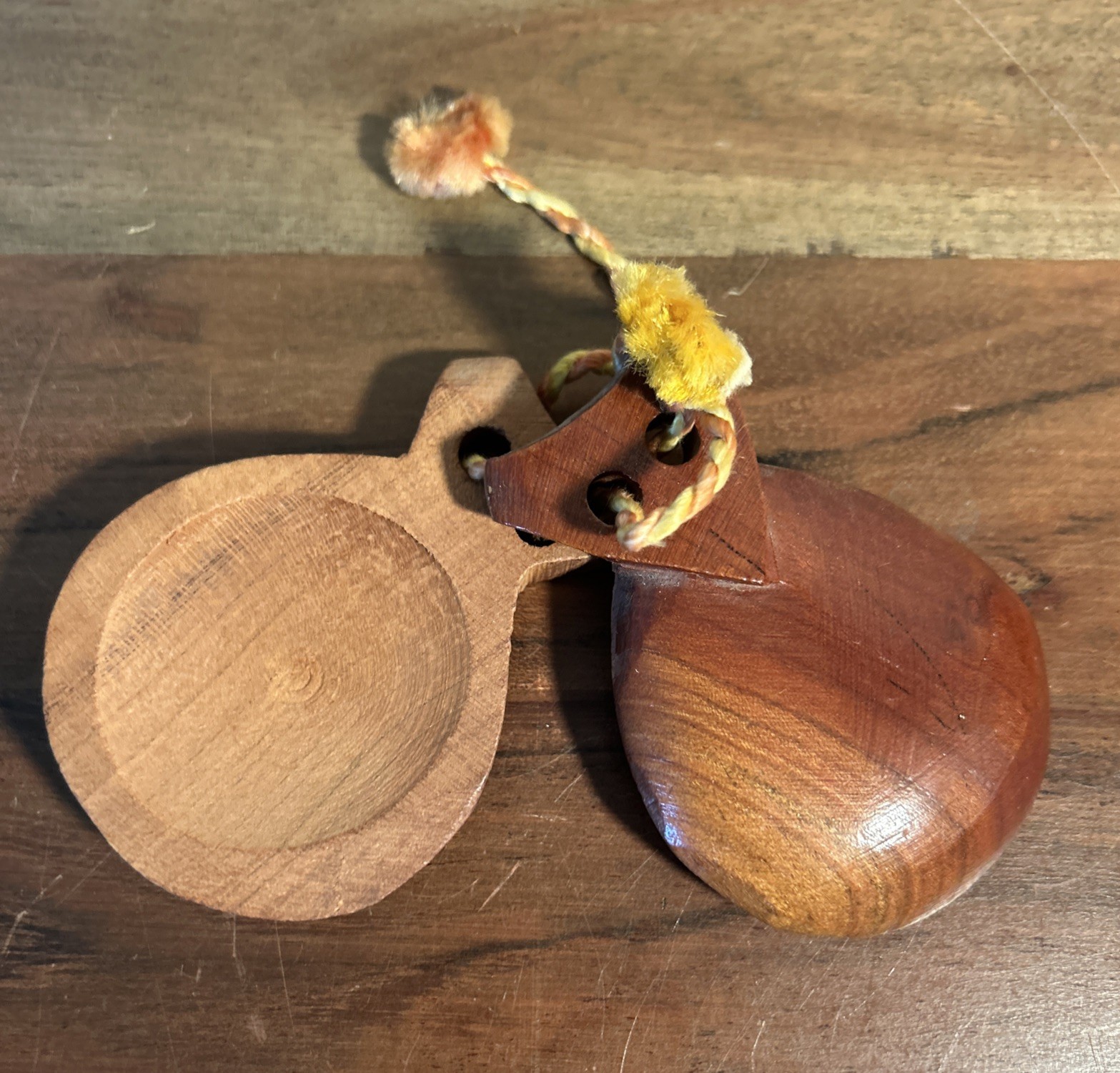 Vintage Wooden Castanets/ Carved Gourd/ Wooden Clappers