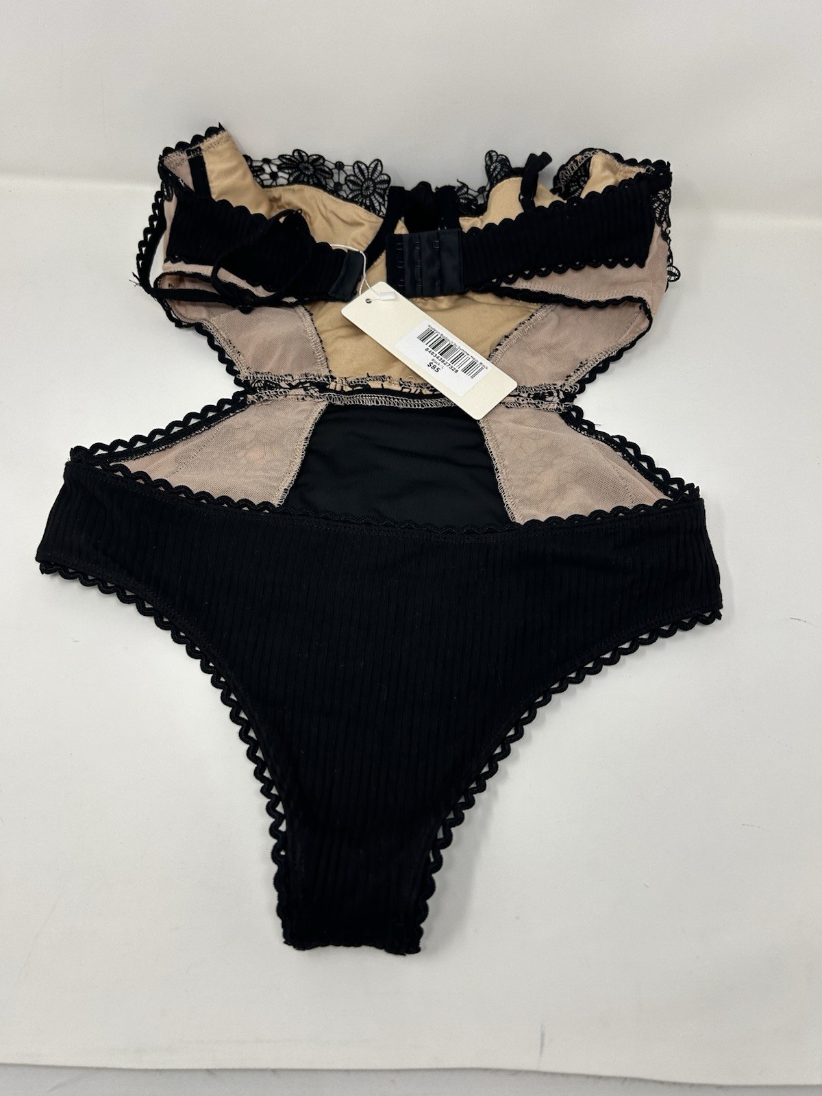 как выглядит NWT Black Bodysuit With Floral Lace Detailing Size Fits More Like M MSRP 85 фото