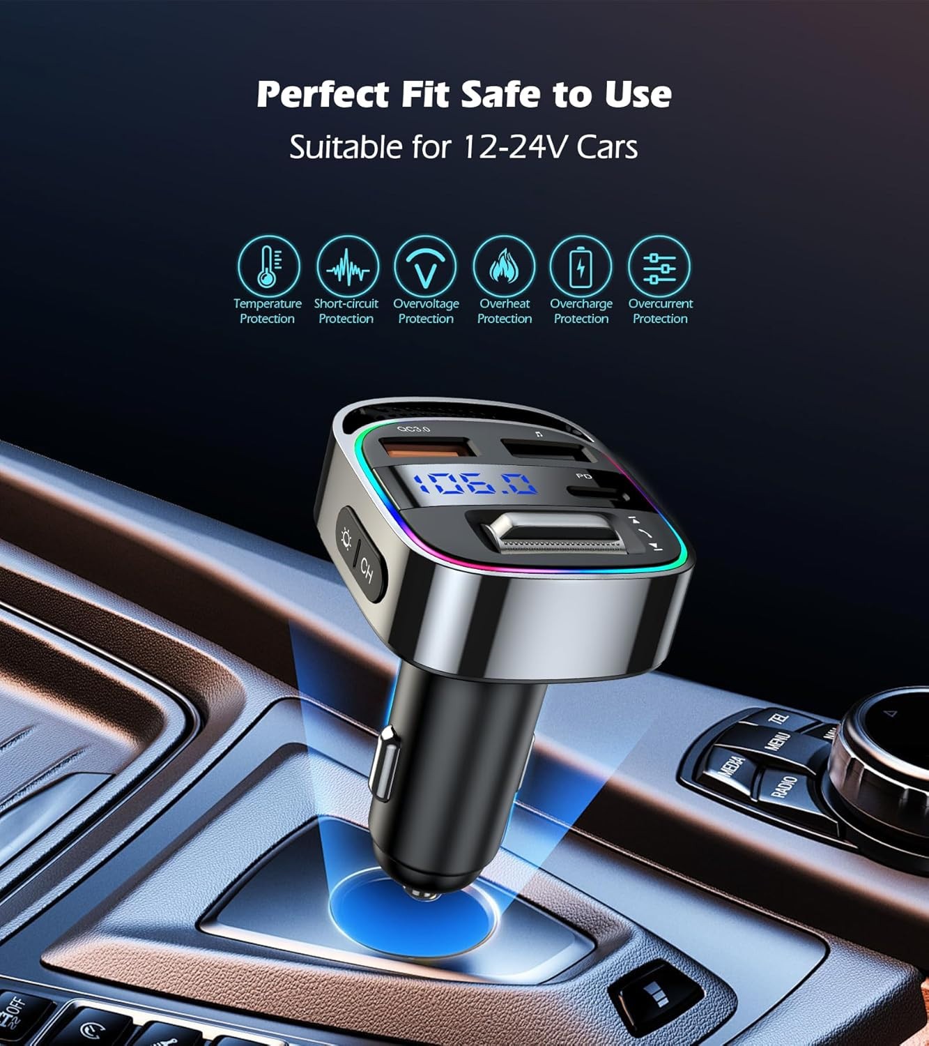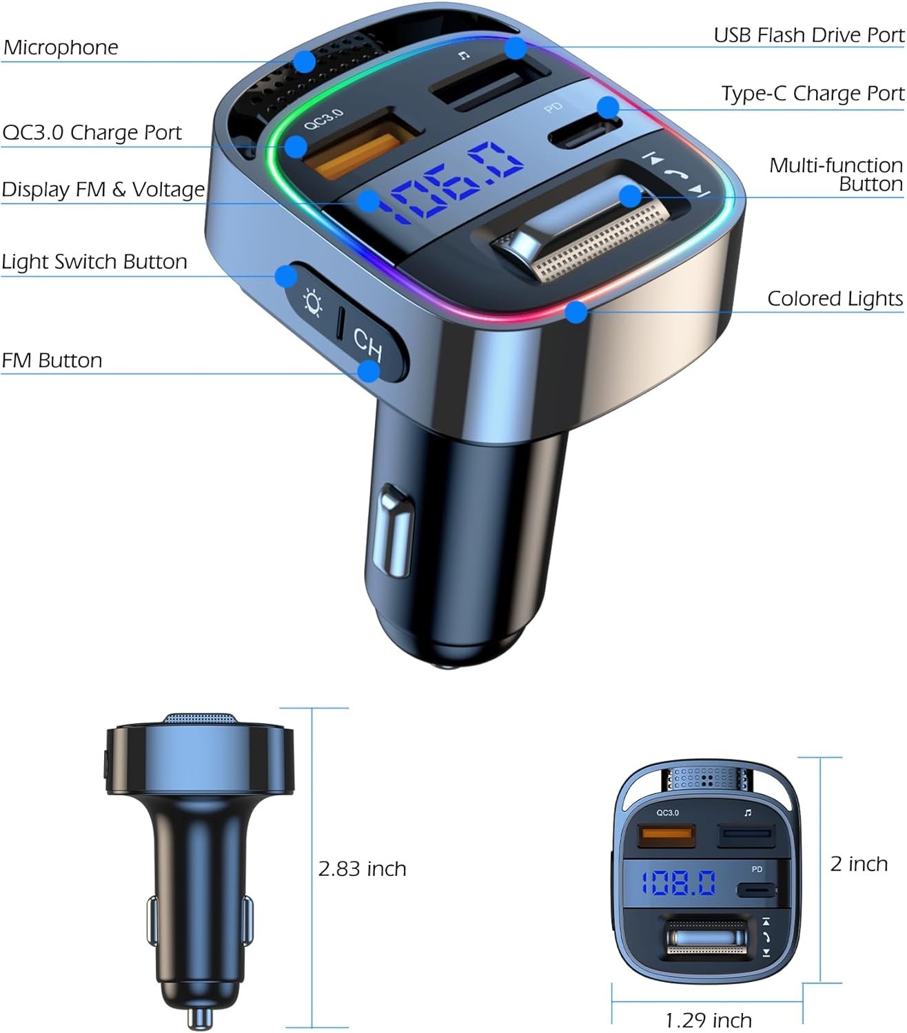 Transmisor Bluetooth USB Para Carro Auto Cargador Receptor Con Fm Radio Pantall