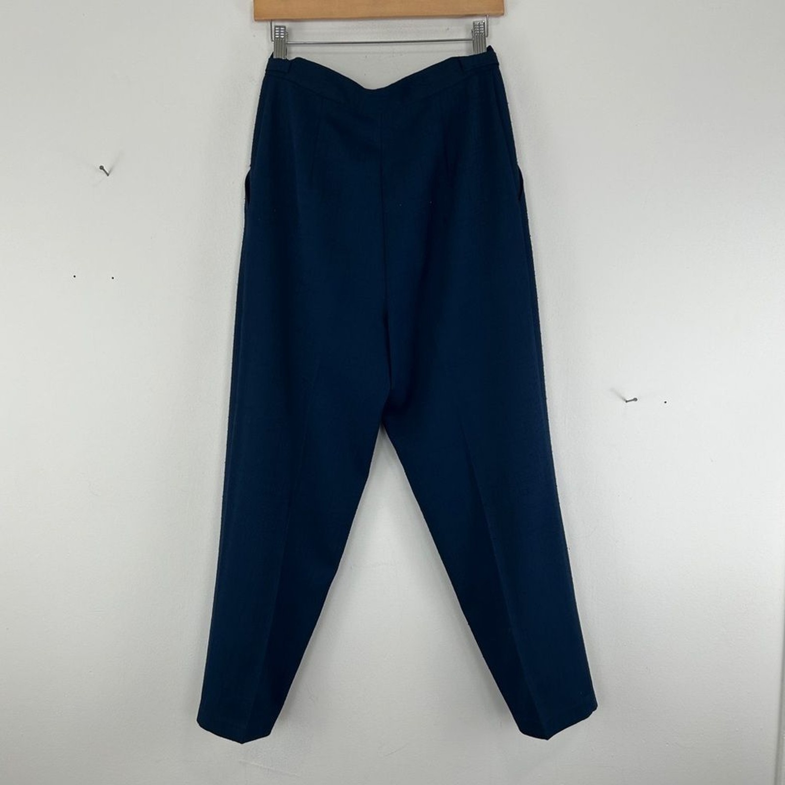 как выглядит Vintage Navy Blue High Waisted Tapered Trousers Pants фото