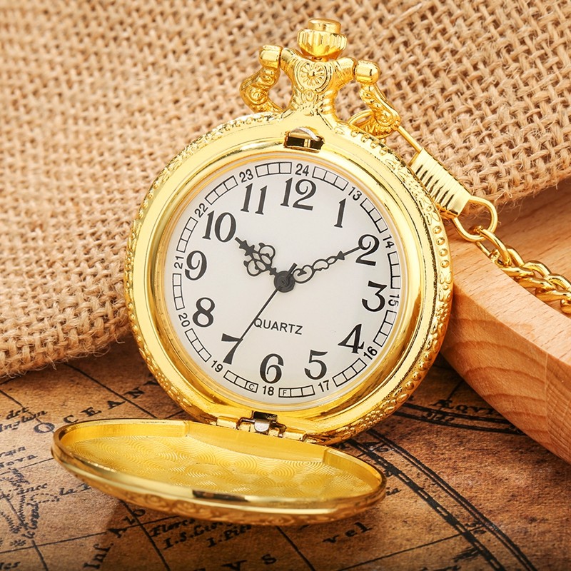 Elegant Gold Shield Pocket Watch Timeless Style Precision Men's Quartz Watches