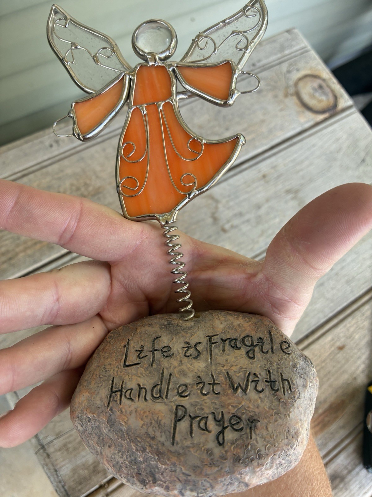 Stained Glass Angel Figurine Spring Rock Base Inspirational Quote 8
