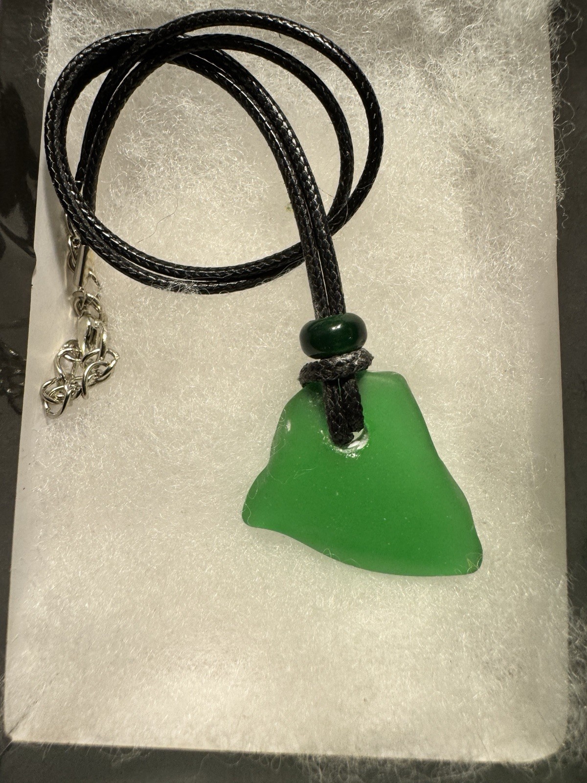 Handcrafted Beautiful Green Tumbled Glass Necklace Great For Beach