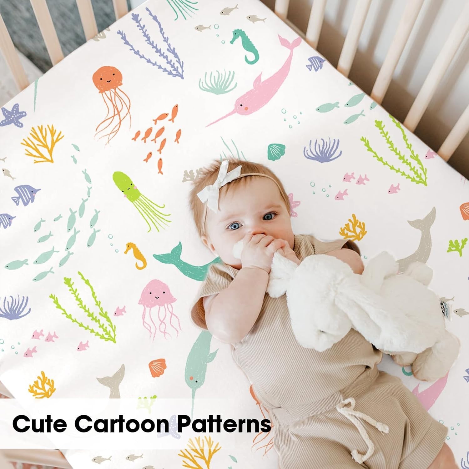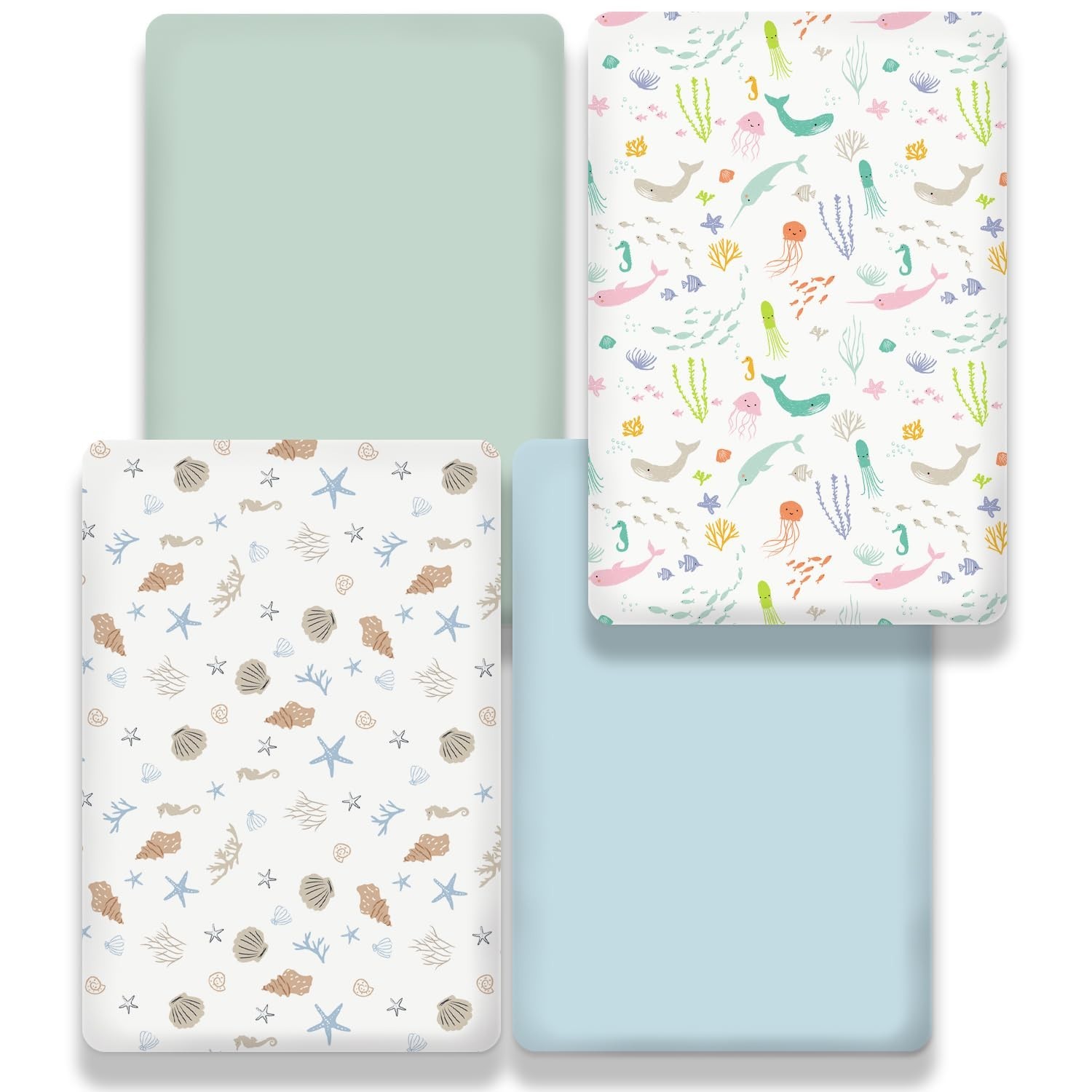 Mini Crib Sheets,Pack and Play Sheets for Baby Girl Boy 4 Pack,Size 38X 26 for