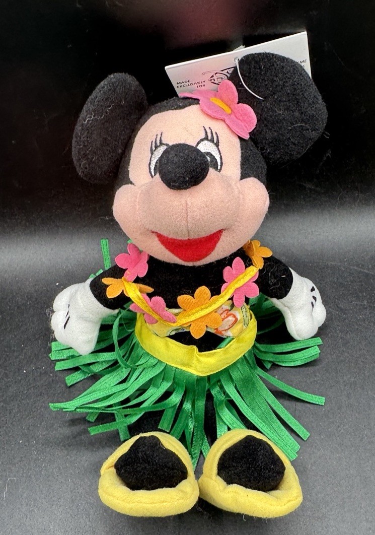 Vtg 1990 s Disney Store Bean Bag Plush - HULA MINNIE Mickey Mouse 9.5