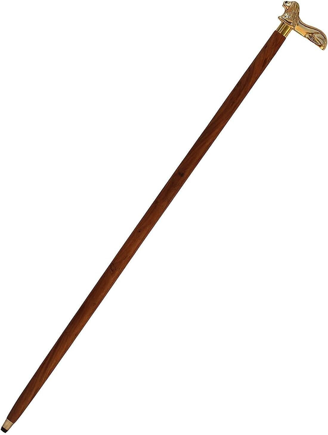 Brass Lion Handle Wooden Walking Cane 36 Surprise Your Old Aged Loved Ones Gift