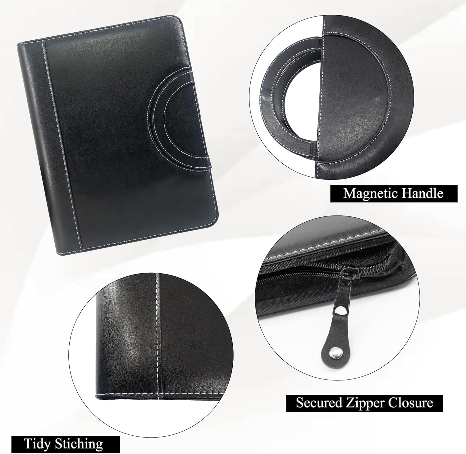 Zippered Leather Portfolio Binder with Handle and Removable 3-Ring Padfolio