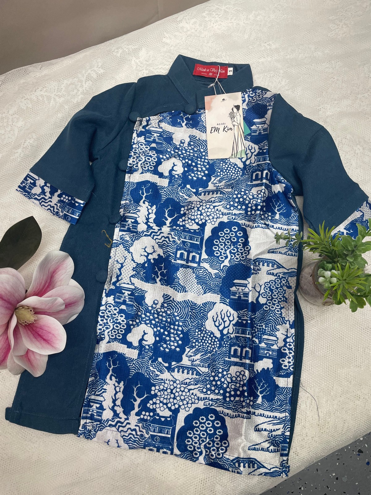 Blue Printed Boy Ao Dai BOY1 Ao Dai Viet Nam Pre-made Vietnamese Long