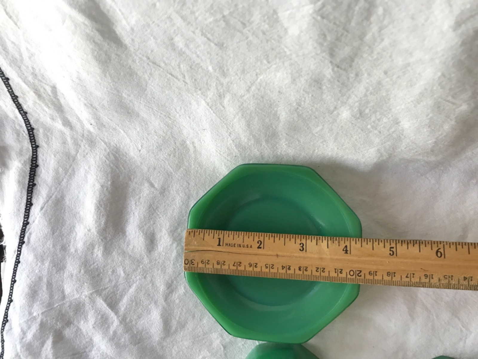 как выглядит Vintage Akro Agate Childs Pair of Tea Cups Saucers Jadite Green Slag Octagon фото